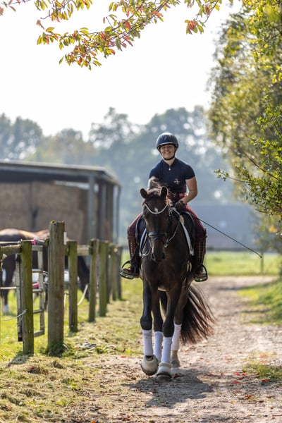 Deze grootgebouwde ruin heeft drie goede basisgangen, waarbij de stap bijzonder opvalt. Hij is onbevreesd en wil alles goed doen voor zijn ruiter. Omdat hij van driejarige leeftijd tot nu toe veel heeft meegemaakt en zich heeft ontwikkeld, hebben we hem de tijd gegeven die hij nodig had. Hij beschikt over een zeer goede basisopleiding en is nu klaar om verder ontwikkeld te worden. Hij is gewend om dagelijks lange tijd buiten te zijn, graag ook samen met andere paarden in de kudde. Een video maken we volgende week. Ik kijk uit naar uw aanvraag.