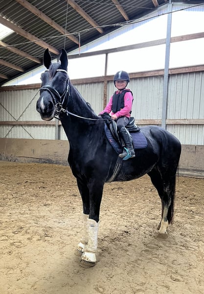 ✨ Duke of Devon – Charakterstarker 4-letni wałach z potencjałem i dużym rozmiarem ✨ Rasa: Klacz typu Warmblood / Westfalski Płeć: Wałach Wiek: 4 lata (ur. kwiecień 2021) Kolor: Ciemnobrązowy Wzrost: około 178 cm Duke to imponujący, ciemnobrązowy wałach, pochodzący od Diamond Deluxe x Rittmeister, wyróżniający się dużą obecnością i absolutnie niezawodnym, spokojnym charakterem. Kupiony jako źrebię i od tego czasu starannie oraz profesjonalnie rozwijany, zawsze wykazuje chęć do nauki i współpracę. Wykształcenie i umiejętności: - Delikatnie rozpoczęty pod siodłem w wieku 3,5 lat - Obecnie na poziomie klasy A w ujeżdżeniu - Skacze małe przeszkody - Bezpieczny na terenach, zarówno samodzielnie, jak i w grupie - Odpowiedni dla dzieci na lonży - Bezproblemowy w transporcie i załadunku - Zna trening w terenie, zachowuje spokój w obcych środowiskach - Zaznajomiony z wolnym wybiegiem i trzymaniem w boksie Obsługa i temperament: Duke to w codziennym kontakcie prawdziwy skarb: grzeczny, przywiązany do człowieka, szczery i odporny na nerwy – koń, który zawsze chce się podobać i jest bardzo łatwy w prowadzeniu. Przeznaczenie: - Dla jeźdźców skupiających się na ujeżdżeniu - Koń klubowy dzięki zrównoważonemu charakterowi - Koń do freestyle’u (volte) ze względu na rozmiar, spokój i opanowanie - Ambitnym jeźdźcom startującym na zawodach lub jeżdżącym rekreacyjnie - Jeźdźcom poszukującym dużego, niezawodnego młodego konia Powód sprzedaży: Sprzedaż następuje wyłącznie z powodu tego, że Duke, z powodu lekkiego wyniku weterynaryjnego, nie spełnia sportowych ambicji właścicielki. W odpowiednim zakresie użytkowania jest nadal w pełni wykorzystywany. Szczegóły zostaną omówione w bezpośredniej rozmowie. Szczery, utalentowany młody koń o najlepszym charakterze – gotowy na nowy etap swojej kariery.