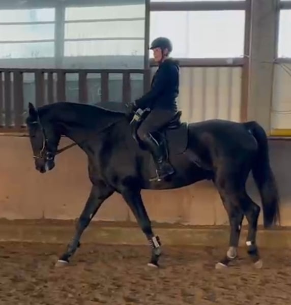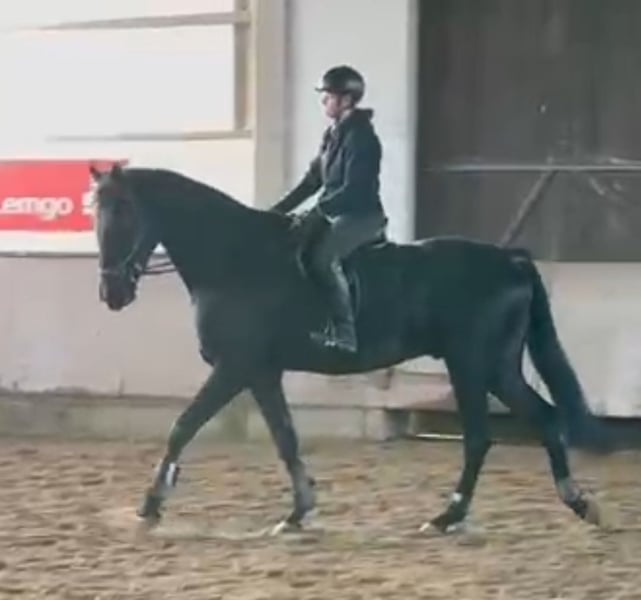 Seit guten 40 Jahren bin ich nun schon Pferde Mama und bin nun an einem Punkt in meinem Leben angekommen, an dem ich alle Verpflichtungen und Herausforderungen mit einem eigenen Pferd loslassen möchte. Daher steht nun nach ganz ganz langer und reiflicher Überlegung mein perfektes Traumpferd zum Verkauf. Ich lasse meinen außergewöhnlichen Wallach nun ganz schweren Herzens in liebevolle, fördernde und kompetente Hände weiterziehen. Meinen Wallach habe ich mit einem halben Jahr gekauft und ihn seitdem bestmöglichst mit viel Liebe und Geduld aufgezogen. Mit seinen jetzt bald fast 5 Jahren (geb. 03/21) hat er ein momentanes Stockmaß von 1,79 cm und steht noch im Wachstum bzw. in der körperlichen Entwicklung. Mit seiner Größe ist er eine Offerte für große Reiter. Er steht auf einem korrekten Fundament, verfügt über einen sehr guten Schritt sowie schöne, raumgreifende, schwungvolle, elastische Grundgangarten und ein sehr angenehmes Temperament. Mein Wallach ist ein wohlerzogenes, absolut braves, kopfklares, verlässliches und immer dem Menschen zugewandtes Pferd mit sehr viel Potential. Er bringt alles mit was man sich von einem Jungpferd nur wünschen kann. Er ist vollkommen unkompliziert im Umgang und bei der Arbeit. Er gehorcht super auf Stimme, arbeitet immer mit und möchte immer alles richtig machen. Er lernt unfassbar schnell, ist sehr intelligent. Im Umgang und beim reiten ist er meist cool und gelassen. Er ist einer von der entspannten Sorte. Er ist total neugierig und nimmt neues meist gelassen hin. Er schmust super gerne und ist dem Menschen gegenüber immer freundlich und aufmerksam. Er kennt alles was ein junges Pferd kennen sollte, im Umgang und Handling. Ich habe ihn stets schonend ausgebildet, ihm viel Zeit gelassen bevor ich z.B. überhaupt mit Longieren angefangen habe. Er kennt Bodenarbeit, Handarbeit, Spaziergänge und regelmäßiges Abschrecktraining, woran er viel Spass hat. Er lässt sich brav in allen Gangarten longieren. Auch mit anderen Pferden in der Halle ist er meist brav und gelassen und bleibt auch bei seinem Reiter/Menschen. Momentan wird er schonend weiter angeritten, alles angepasst und in kleinen feinen Einheiten immer pro Pferd. Er soll Spaß haben einen Reiter zu tragen. Er macht das alles brav mit, auch nach längerer Pause. Er vergisst nichts und macht willig mit was man von ihm möchte. Er steht aber momentan noch ganz am Anfang seiner reiterlichen Ausbildung und braucht nun einen Reiter, der ihm das nötige Grundwissen geduldig und liebevoll vermittelt und ihn weiter entsprechend seiner Talente fördern kann. Aus Zeitmangel ist er momentan nur sehr wenig unter dem Sattel, da wir immer zu zweit dabei sein müssen. Wir versuchen aber ihn regelmäßig dreimal die Woche zu reiten. An den anderen Tagen wird er vielseitig beschäftigt. Da ich ihn eigentlich auch als Fahrpferd nutzen wollte, ist er bereits auch schon mit Geschirr und Schlitten vertraut. Er zieht brav einen Schlitten oder das Gitter um die Hallenzu schleppen. Leider konnten wir das jetzt nach einem Stallwechsel nicht mehr weiter vertiefen. Ich habe meinen Wallach stets mit Ruhe und Sachverstand ausgebildet, denn er ist mein Freund und Partner, an dem ich lange Freude haben wollte. Ich habe ihn mit der bestmöglichen Sorgfalt und Liebe aufgezogen und möchte, dass er ebenso weiterhin behandelt wird. Ich mache viel Bodenarbeit, regelmäßiges Schrecktraining und auch Spaziergänge, damit er ein verlässlicher Geländepartner wird. Ebenso kann ich ihn alleine verladen und er ist sehr brav beim Schmied. Er hat sehr gute Hufe, so dass keine Hufeisen notwendig sein werden. Wir sind im Oktober von unserem kleinen Privatstall an einem großen Stall mit besseren Trainingsmöglichkeiten umgezogen und gewöhnen ihn im Moment an die Führanlage und an die alltäglichen Dinge der neuen Anlage. Dies meistert er ebenfalls ohne Probleme. Er kennt sowohl Boxenhaltung mit Weidegang, als auch Paddockbox und ganztägig raus und ebenfalls Sommerweide. Ich kann ihn mir sehr gut in einem Offenstall oder Aktivstall vorstellen, da er sich ohne Probleme sehr gut in eine Herde integrieren kann. Anderen Pferden gegenüber ist der stets freundlich, in der Herde gab es noch nie Probleme, er ist Rangmittig und kann sich sehr gut einordnen. Mein Wallach hat eine hervorragende Abstammung: Über seinen Vater Selectric (Kohlfuchs, Stockmaß 1,73 cm und Sohn des dreimaligen Weltmeisters Sezuan) schreibt das Landgestüt Westfalen: SELECTRIC ist ein Eyecatcher. Nicht nur durch seine herrliche Farbe und seinen charmanten Habitus weiß er zu begeistern. Stets präsentiert er sich schwungvoll, raumgreifend mit Elastizität und im Gleichmaß. Mit einer dressurbetonten Endnote von 8,49 schloss er 2018 seinen 14-Tage-Test in Adelheidsdorf als Drittbester ab. Mit einer 9,75 wurde ihm vom Fremdreiter eine nahezu perfekte Leistung attestiert. Ebenfalls punktete er jeweils mit einer 8,5 für Leistungsbereitschaft und Galoppade. In der Saison 2020 qualifizierte sich SELECTRIC für die Teilnahme am Bundeschampionat. 2019 war er siegreich in einer Reitpferdeprüfung und absolvierte seinen Sporttest Dressur mit einer Gesamtnote von 8,19. St.Pr. St. Debby ist Vollschwester zu zwei gekörten Hengsten und einigen im Viereck erfolgreichen Dressurpferden. Großmutter St.Pr.St. Walhalla absolvierte eine exzellente Leistungsprüfung mit 8,28. Weiterhin ist die St.Pr.St. Andorra Mutter zum gekörten Montserrat sowie erfolgreichen Springpferden. Die Mutter, mit einem Stockmaß von 1,68 cm, stammt ab von Rubitano und war selbst erfolgreich in der Dressur bis zur Klasse L. Rubitano stammt ab von Rubin-Royal. Dieser Oldenburger entstammt der Passerpaarung der Elite-Stute Rumirell mal Rohdiamant, aus der insgesamt sechs gekörte Vollbrüder hervorgingen. Rubin Royal platzierte sich in den Grand Prix-Touren von Dortmund, Bremen, Münster, Bern/SUI, Aachen, Turin/ITA, Donaueschingen, München und Stuttgart. Er zeugte über 25 gekörte Hengste un