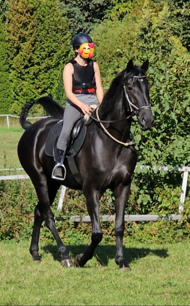 Od ponad 40 lat jestem właścicielką koni i w tym momencie mojego życia nadszedł czas, aby odpuścić wszystkie obowiązki i wyzwania związane z własnym koniem. Po długim i przemyślanym namyśle zdecydowałam się na sprzedaż mojego wymarzonego, idealnego konia. Z ciężkim sercem oddaję mojego wyjątkowego ogiera w troskliwe, wspierające i kompetentne ręce. Mojego ogiera kupiłam w wieku pół roku i od tego czasu wychowałam go z największą starannością, pełną miłości i cierpliwości. W wieku prawie 5 lat (ur. 03/21) ma obecnie około 179 cm wzrostu i nadal rośnie, rozwijając się fizycznie. Ze swoim wzrostem jest idealny dla wysokich jeźdźców. Stoi na poprawnym fundamencie, posiada bardzo dobre chody, a jego podstawowe ruchy są piękne, przestrzenne, pełne energii, elastyczne i harmonijne, a temperament jest bardzo przyjemny. Mój ogier to dobrze wychowany, absolutnie posłuszny, klarowny umysłowo, niezawodny koń, zawsze otwarty na kontakt z człowiekiem, z dużym potencjałem. Ma wszystko, czego można oczekiwać od młodego konia. Jest całkowicie bezproblemowy w obsłudze i podczas pracy. Doskonale reaguje na głos, zawsze współpracuje i chce zrobić wszystko poprawnie. Uczy się niesamowicie szybko, jest bardzo inteligentny. W kontaktach i podczas jazdy jest zazwyczaj spokojny i opanowany. To koń z relaksującej, zrelaksowanej kategorii. Jest bardzo ciekawski i podchodzi do nowości z dużą spokojem. Uwielbia głaskanie i jest zawsze uprzejmy i uważny wobec człowieka. Zna wszystko, co powinien znać młody koń, zarówno w obsłudze, jak i w pracy z ziemi. Zawsze podchodziłam do jego szkolenia delikatnie, dając mu dużo czasu, zanim zacząłam np. z lonżowaniem. Zna pracę na ziemi, ręczną, spacery i regularne treningi odstraszające, które bardzo mu się podobają. Został nauczony spokojnego lonżowania we wszystkich chodach. W hali jest zazwyczaj spokojny i opanowany także w towarzystwie innych koni i pozostaje posłuszny swojemu jeźdźcowi. Obecnie jest delikatnie wprowadzany do jazdy, wszystko jest dostosowane do jego potrzeb, w małych, starannie dobranych jednostkach. Chce czuć radość z noszenia jeźdźca. Robi to wszystko dobrze, nawet po dłuższej przerwie. Niczego nie zapomina i chętnie wykonuje polecenia. Obecnie znajduje się na początku swojej szkoleniowej drogi i potrzebuje jeźdźca, który cierpliwie i z miłością przekaże mu podstawową wiedzę oraz będzie go dalej rozwijał zgodnie z jego talentami. Ze względu na ograniczony czas, jest obecnie rzadko pod siodłem, ponieważ musimy być we dwójkę. Staramy się jednak jeździć trzy razy w tygodniu, a w pozostałe dni jest zajęty różnorodnymi ćwiczeniami. Ponieważ planowałam go także używać jako konia zaprzęgowego, jest już zaznajomiony z uprzężą i zaprzęgiem. Chętnie ciągnie wóz lub gniotę do hali. Niestety, po zmianie stajni nie udało się tego dalej rozwijać. Zawsze wychowałam go z troską i rozsądkiem, bo jest moim przyjacielem i partnerem, którego chciałam cieszyć przez długi czas. Wychowałam go z największą starannością i miłością i chcę, aby był nadal traktowany z takim samym szacunkiem. Regularnie wykonuję pracę na ziemi, treningi odstraszające i spacery, aby stał się niezawodnym partnerem na terenach otwartych. Potrafi samodzielnie wjechać do traileru i jest bardzo posłuszny wobec kowala. Ma bardzo dobre kopyta, więc nie będzie potrzebował podków. W październiku przeprowadziliśmy się z małej, prywatnej stajni do dużego ośrodka z lepszymi możliwościami treningowymi i obecnie przyzwyczaja się do nowego otoczenia, w tym do systemu prowadzenia i codziennych obowiązków. Radzi sobie z tym bez problemu. Zna zarówno boksy z wybiegiem, jak i boksy typu paddock, a także cały dzień na pastwisku, także latem. Bardzo dobrze odnajduje się w wolnym wybiegu lub stajni aktywnej, ponieważ bez problemu integruje się z inną grupą koni. W relacjach z innymi końmi jest zawsze uprzejmy, nigdy nie miał problemów w stadzie, zajmuje środkową pozycję i potrafi się dobrze dostosować. Mój ogier pochodzi z doskonałej linii rodowodowej: O jego ojcu, Selectricu (kary kohlfuchs, wzrost 173 cm, syn trzykrotnego mistrza świata Sezuana), pisze Państwowa Stadnina Westfalii: SELECTRIC to konik, który przyciąga uwagę. Nie tylko dzięki pięknemu umaszczeniu i urokliwemu wyglądowi, ale także dzięki swojej energii i elastyczności. W 2018 roku podczas 14-dniowego testu w Adelheidsdorf uzyskał ocenę 8,49 w ujeździe, kończąc na trzecim miejscu. Jego niemiecki oceniacz wystawił mu niemal perfekcyjną ocenę 9,75. Zawsze prezentuje się z energią, pełnym gracją, elastycznością i harmonią. W sezonie 2020 zakwalifikował się do udziału w Mistrzostwach Federalnych. W 2019 roku zwyciężył w konkursie koni sportowych i uzyskał łączną ocenę 8,19 w próbie ujeżdżeniowej. Przyszedł z pełną rodowodową linią, w tym z siostrami pełnymi, które są matkami dwukrotnie zarejestrowanych ogierów i odnoszą sukcesy w ujeżdżeniu. Prababcia, St.Pr.St. Walhalla, uzyskała doskonałą ocenę 8,28 w próbie wytrzymałości. Matka, St.Pr.St. Andorra, jest matką zarejestrowanego ogiera Montserrat oraz wielu odnoszących sukcesy koni skokowych. Matka, o wzroście 168 cm, pochodzi od Rubitano i odnosiła sukcesy w ujeżdżeniu do poziomu klasy L. Rubitano to syn Rubin-Royal, reprezentujący starą linię Oldenburską, wywodzącą się z elitarnej klaczy Rumirell, z potomstwem Rohdiamanta, z którego wywodzi się aż sześć zarejestrowanych pełnych braci. Rubin Royal startował w konkursach Grand Prix w Dortmundu, Bremie, Münster, Bernie (SUI), Akwizgranie, Turynie (ITA), Donaueschingen, Monachium i Stuttgarcie. Wydał na świat ponad 25 zarejestrowanych ogierów i wiele topowych koni (z łączną sumą nagród przekraczającą milion euro). Przez pięć lat plasował się w czołówce światowych rep
