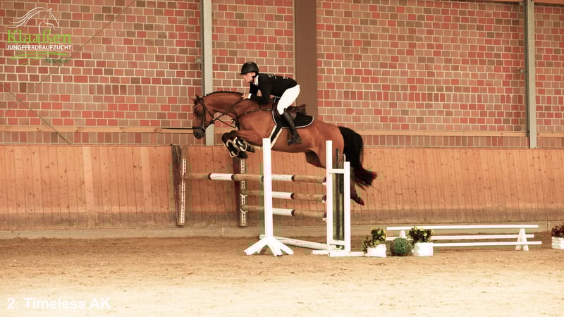 Father Tangelo van de Zuuthoeve (1.60m) is sired by the stallions Narcos II, Laudanum xx, and Ramiro Z, all of whom have been successful at over 1.60m. More than 250 of his offspring have been successful internationally at 1.40m and higher, including Tobago Z and Darry Lou. The dam's sire Numero Uno (1.55m) is what one would call a star sire in international show jumping breeding: more than 500 offspring worldwide are making waves in competitions over 1.40m and higher. The dam Lisa produced the full sister Tarja 4, who has been successful up to 1.40m and was sold at our first farm auction. She is now sold to international successful riders. The second dam Chico's Lady has 3 offspring that are successful at 1.40m-1.50m. The third sire Chico's Boy, in a way a double sire, has produced successful offspring in every discipline of equestrian sport at the S-level. Friendly and sweet in handling, a horse of small stature but with huge potential. He will be offered at our farm auction on 30.08.2025 under: mennraths.de Hofauktion Klaaßen https://www.mennraths.de/auction/96/catalog