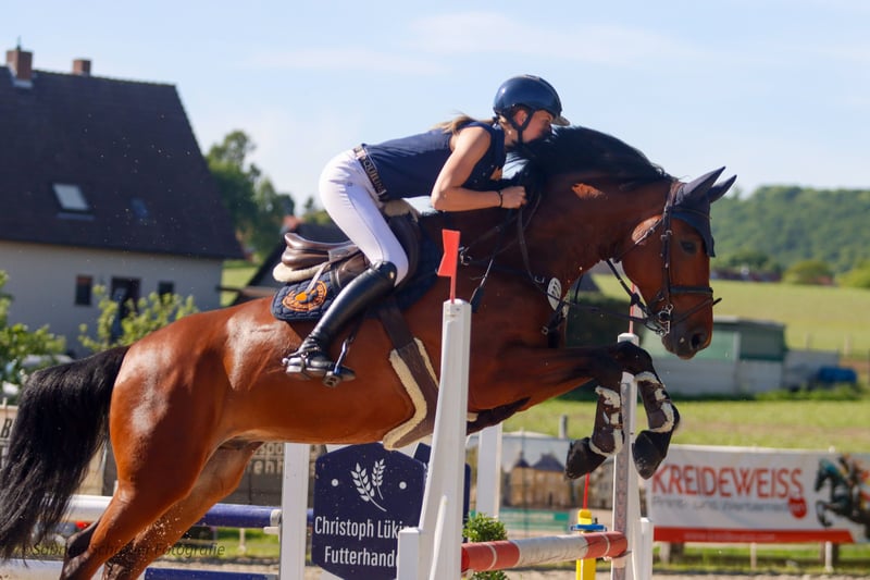 À vendre : un hongre de 6 ans issu de l’élevage Glasgow x Piano, directement acheté chez l’éleveur. Galico recherche un joli foyer où son talent en saut d’obstacles pourra être reconnu et exploité. Il est résistant nerveusement, facile à vivre, et s’entend particulièrement bien avec les autres chevaux en pâture. Il a été présenté en saut d’obstacles jusqu’au niveau Saut d’obstacles pour jeunes chevaux L et a obtenu plusieurs places en Saut d’obstacles pour jeunes chevaux A** / Saut d’obstacles A. Il a été monté par un jeune cavalier de 14 ans. Galico présente un léger handicap : il souffre de spasmes de jeunesse, mais cela ne pose aucun problème en lien avec cette condition. Cela a été vérifié en 2024, Galico a été entièrement examiné, et aucun autre problème n’a été détecté. Pour toute question supplémentaire, merci de contacter par téléphone au 0152 575 04658.
