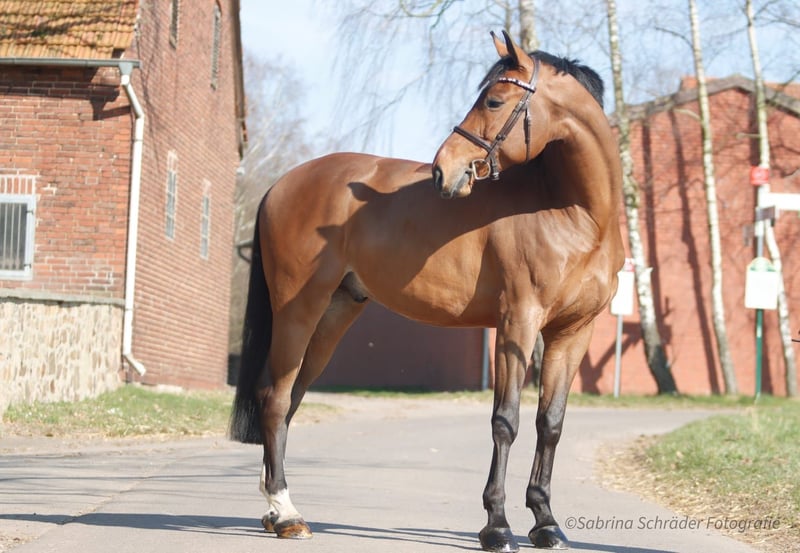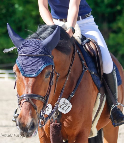 For sale is a 6-year-old gelding by Glasgow x Piano, available directly from the breeder. Galico is looking for a loving home where his jumping talent can be recognized and utilized. He is confident, easy to handle, and especially gets along well with other horses on the pasture. He has been introduced to show jumping at the L level and has several placings in A** show jumping / A-level jumping competitions, ridden by a young rider aged 14. Galico has a minor issue: he has juvenile spavin, but this causes no problems whatsoever. It was examined in 2024, and Galico underwent a thorough veterinary check; no further findings are present. For further questions, please contact us by phone at 0152 575 04658.
