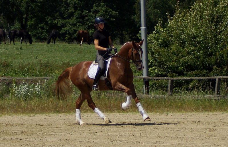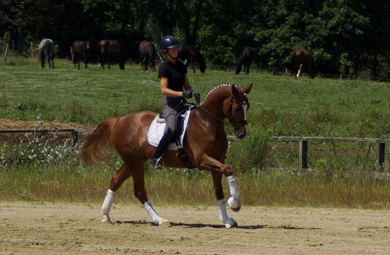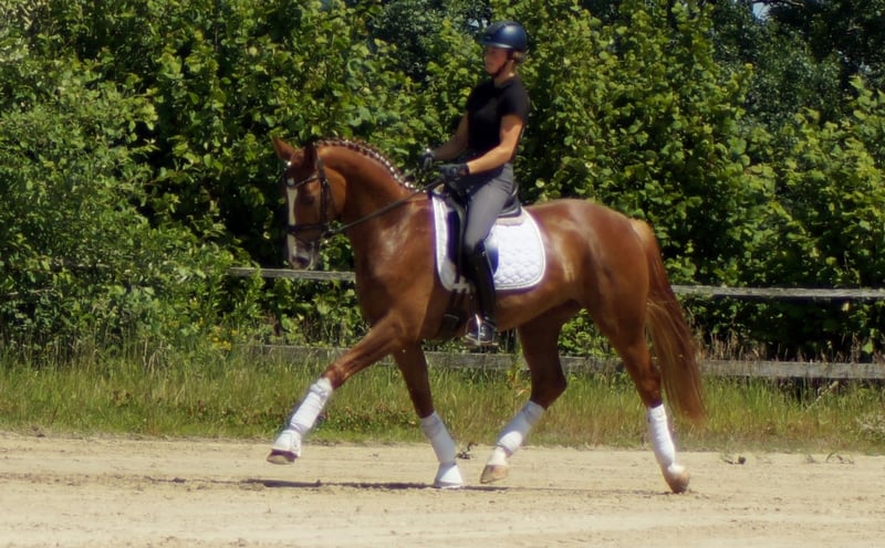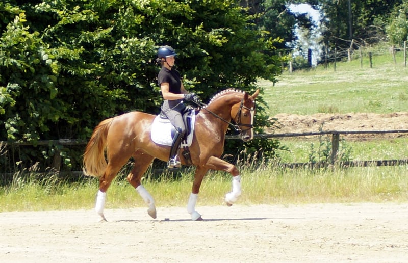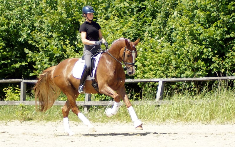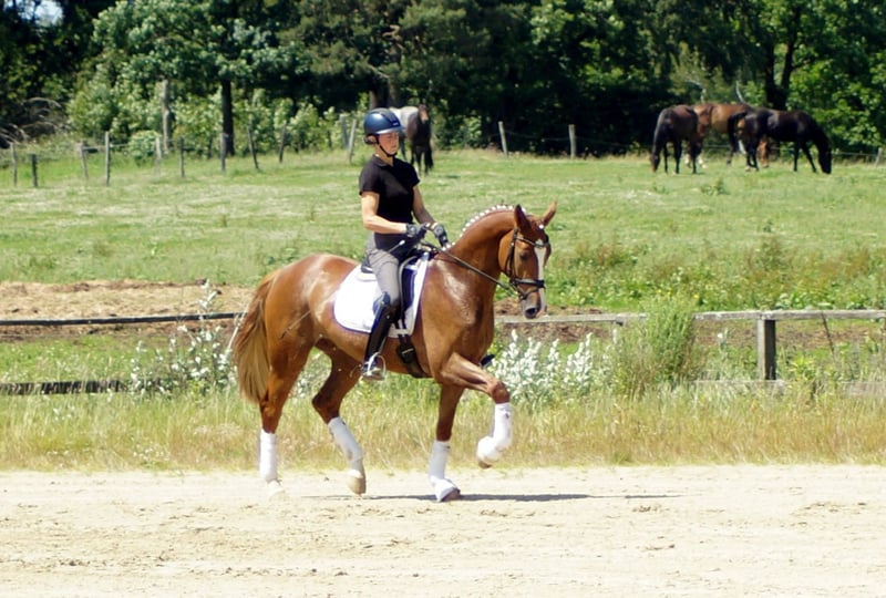 Enrico porte en lui des gènes importants. Son père Escamillo a été vice-champion du monde et gravit actuellement les échelons du succès en S* et S**. La mère d'Enrico a elle-même obtenu une note de 8,21 au test de performance des juments et a un double champion du monde dans son pedigree avec Florencio. Ces gènes se reflètent également chez Enrico. Tout comme ses frères et sœurs Destino et For Infinity, son attitude est d'abord un peu réservée. Dès qu'il sait ce qu'il faut faire, l'alerte aérienne commence. Le sang Florencio, très apprécié des cavaliers, assure ici une impulsion puissante et dynamique, renforcée par l'impressionnante mécanique de trot élastique d'Escamillo. La belle montée et l'énorme liberté d'épaules démontrent également sa qualité particulière au galop. Doté d'une bonne posture et d'un cadre remarquable, il est très tôt facile pour lui de jouer avec son équilibre. On remarque également son bon appui, qu'il possède déjà après quelques jours sous la selle. Dans l'ensemble, ce jeune étalon brille très tôt par ses nombreux extras et son excellent intérieur, qui rappelle la lignée E de Westphalie. Enrico est actuellement testé sans problème et fera partie de la première vente aux enchères de l'exploitation Höll le 15 septembre. Vous trouverez de plus amples informations à ce sujet sur Pferdesport-hoell.com. Des séances d'essai peuvent être organisées à tout moment.