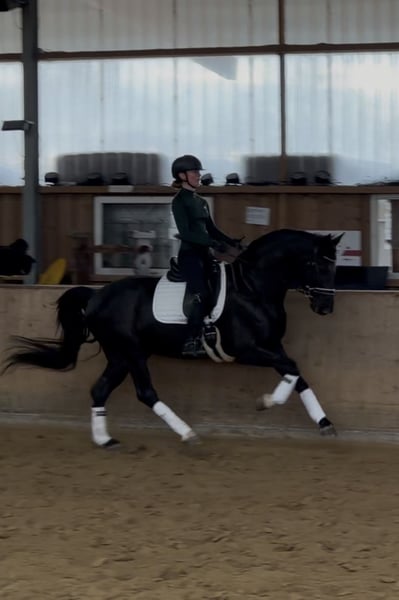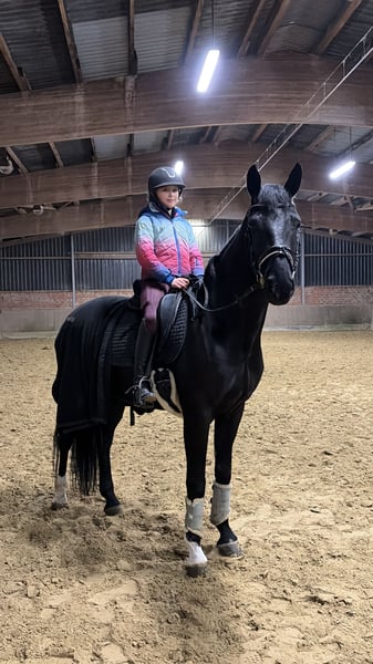 Se ofrece a la venta un prometedor caballo Westfaliano de 6 años, hijo de Escamillo x Riccio, equipado con excelentes movimientos básicos y con gran potencial para el deporte de doma clásica. Destaca por su manejabilidad, disposición para aprender y talento para el gran cuadrilátero. En 2025, ya fue colocado con éxito en la categoría A-B junto a una amateur. Actualmente domina las lecciones de la categoría L. Emiliano se presenta como un caballo completamente fiable: siempre tranquilo, honesto y confiable, sin ningún mal comportamiento, y también apto para ser montado por niños. Los cambios de pie volantes se han iniciado de manera lúdica. Además, demuestra ser muy dócil en todos los aspectos: salta con calma obstáculos pequeños bajo la silla, pasea tanto solo como en grupo con tranquilidad en el campo y no presenta problemas con el herrador, en el transporte o con el veterinario. El caballo goza de excelente salud, está vacunado y desparasitato regularmente, y sus dientes han sido revisados periódicamente. Buscamos para este caballo especial un hogar amoroso y que fomente su desarrollo, donde reciba la atención necesaria para seguir progresando en su entrenamiento deportivo. Para más información o para concertar una cita, no dude en llamarnos al 01702425658. ☺️