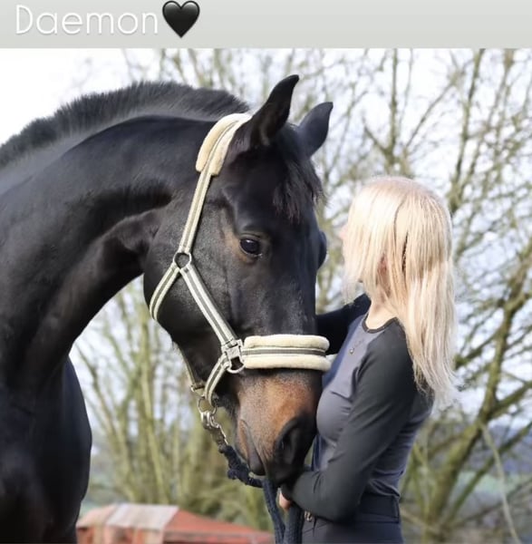 Daemon ist ein fünfjähriger Wallach welcher sich durch viel Potential für den Springsport auszeichnet. Er begeistert nicht nur durch seine Größe, sondern durch seine gesamte Art die dem Menschen sehr zugewandt ist. Daemon ist gut ausgebildet und zeigt mehr als nur vielversprechende Leistungen in der Springdisziplin. Seinen aller ersten Turnierstart meisterte er souverän und 🥇 siegreich! Die Springabstammung spricht Bände : Graf Grannus x Dembele‘ / Diamant de Semilly. Schwester mütterlicherseits die international erfolgreiche Oldenburger Staatsprämienstute Quintessenz mit über 60 Siegen (bis S**) in der schweren Klasse. Tochter von Quintessenz, die Oldenburger Stute Chaming Charlotte in der schweren Klassse (bis S**) hoch erfolgreich. Schwester mütterlicherseits die Oldenburger Verbandsprämienstute Quinenza, national in der schweren Klasse erfolgreich. Daemon besticht durch seinen außergewöhnlichen grundehrlichen Top-Charakter sowie seiner Leichtrittigkeit! Daher steht auch Erfolgen in der Dressur nichts im Wege! Er eignet sich sowohl für den ambitionierten Reiter als auch für den erfahrenen Sportler, der auf der Suche nach einem talentierten Partner für Turniere und Training ist. Daemon ist brav im Umgang, gut sozialisiert und hat ein freundliches Wesen. Für ihn wird ein top 5***** Zuhause gesucht! Verkauf direkt vom Züchter! Weitere Fragen usw beantworte ich gerne per WhatsApp oder unter 015204111038.