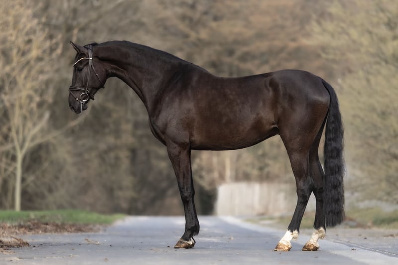 Zum Verkauf steht „Littlefoot“ ein außergewöhnlicher 6-jähriger Rappwallach mit einem Stockmaß von ca. 1,82 m, der bereits durch seine imposante Erscheinung und seine überdurchschnittlichen Grundgangarten beeindruckt. Er bringt viel Rahmen, Ausdruck und vor allem einen enormen Bewegungsablauf mit, der ihn für den Dressursport besonders interessant macht. Seine Grundgangarten sind von hoher Qualität geprägt: ein schwungvoller, raumgreifender Trab mit viel Elastizität, ein kraftvoller Galopp mit guter Bergauftendenz sowie ein taktsicherer Schritt. Besonders hervorzuheben ist sein enormer Schub und Schwung, den er von Natur aus mitbringt. Aufgrund seiner Größe und seines langen Wachstums wurde er bewusst spät angeritten, sodass er sich körperlich gut entwickeln konnte. Aktuell befindet er sich noch in der Phase, weiter in seinen Körper hineinzufinden und an Balance zu gewinnen. Genau hier zeigt sich jedoch seine besondere Einstellung: Unter dem Sattel ist er sehr bemüht, alles richtig zu machen, bietet sich gut an und vermittelt trotz seiner Größe ein sehr angenehmes und leichtes Reitgefühl. Er ist amateurtauglich, benötigt jedoch einen Reiter, der ihm Sicherheit gibt und ihn in seiner weiteren Entwicklung unterstützt. Aufgrund seines großen Bewegungsablaufs und seines Schwungs ist er kein klassisches Anfängerpferd, sondern eher ein Partner für Reiter, die ein Pferd mit Qualität und Perspektive suchen und Freude daran haben, ein solches Pferd weiter auszubilden. Charakterlich überzeugt er auf ganzer Linie: neugierig, aufgeschlossen und menschenbezogen. Er liebt Aufmerksamkeit, genießt das Putzen und zeigt sich im täglichen Umgang sehr angenehm. Im Herdenverband ist er absolut verträglich und sozial. Dieser Rappwallach ist ein Pferd mit viel Potenzial für die Zukunft. Wer ein großrahmiges, bewegungsstarkes Pferd mit ehrlichem Charakter sucht und bereit ist, ihm die nötige Zeit für seine weitere Entwicklung zu geben, findet in ihm einen spannenden Partner für den Sport. Bei Interesse oder Fragen freuen wir uns auf eine Nachricht - 0176-82205841 Ein Kennenlernen ist nahezu jederzeit möglich. Für das Vorstellen/Probereiten der Stute nehmen wir eine Pauschale von 30€. Die Möglichkeit, sich ihr Traumpferd nachhause transportieren zu lassen besteht natürlich auch.