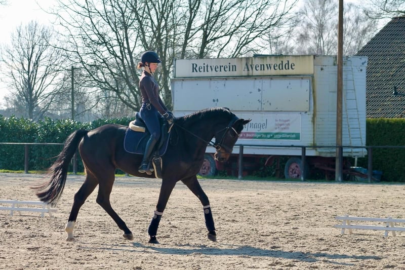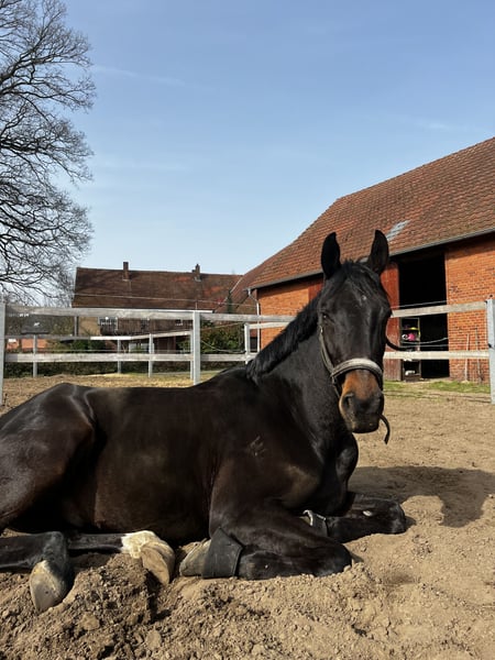 Zum Verkauf steht ein 7 Jähriger Westfale von Da Costa x Belissimo M. Denver ist in der täglichen Dressurarbeit motiviert und besonders lernwillig. Aufgrund von knappen Zeitressourcen durch Studium und Arbeit wurde er nicht auf dem Turnier vorgestellt. Schweren Herzens habe ich mich dazu entschieden ihn abzugeben, damit er ein neues Zuhause findet, wo er von einem erfahrenen Reiter weiter gefördert werden kann. Denver kennt ganzjährigen Wiesengang – alleine oder mit Wiesenpartner. Er ist schmiede- sowie verladefromm. (Kleine) Sprünge absolviert er mit Übersicht und Freude. Aufgrund eines Befundes (nicht röntgenologisch und ohne Funktionseinschränkung) ist er deutlich unter Wert abzugeben. Bei Interesse freue ich mich über eine Nachricht oder einen Anruf.