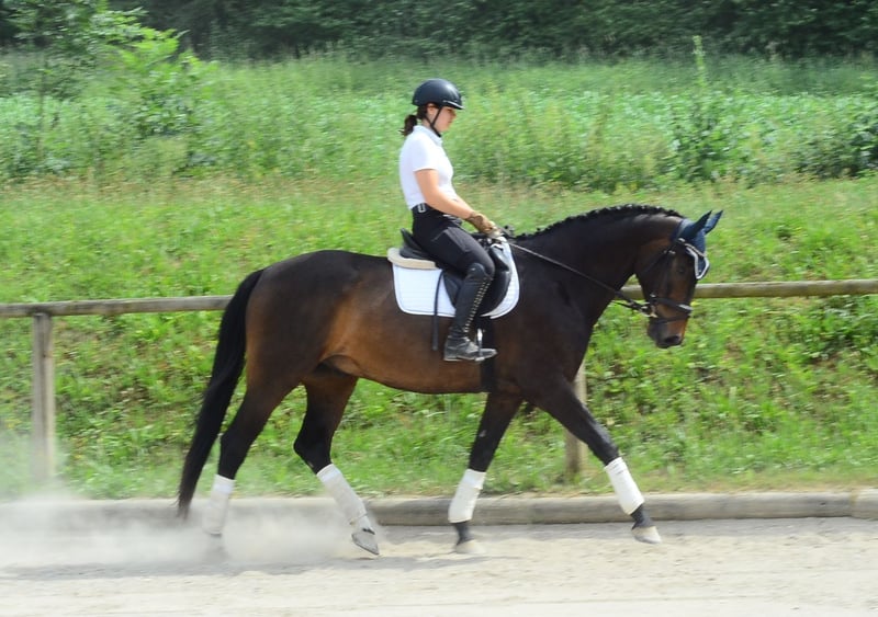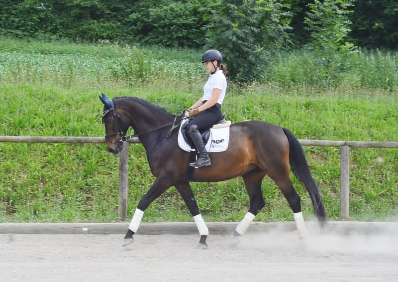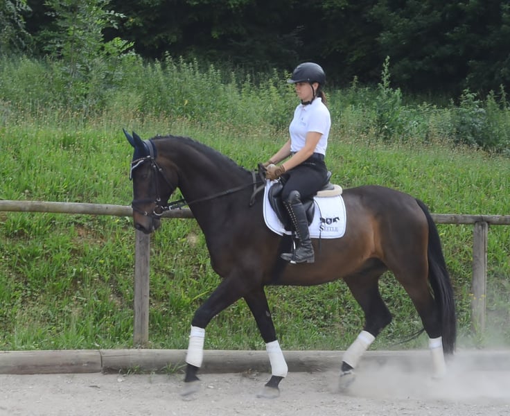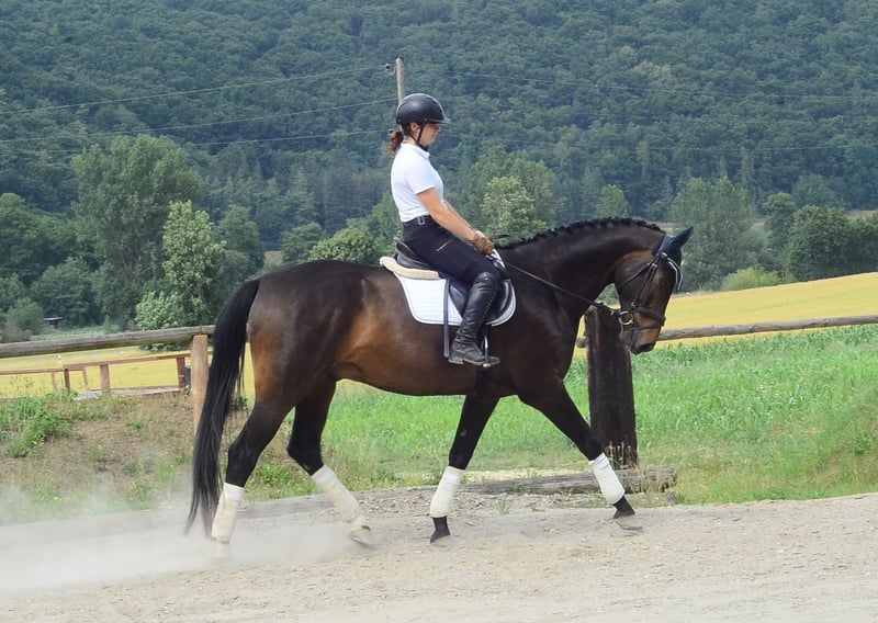 Auffälliger, hübscher brauner Wallach mit guten GGA und Talent am Sprung. Mit Platzierung in der Klasse A Springpferde. Ein toller Allrounder für den vielseitigen Einsatz, für Dressur, Springen und Freizeit geeignet.