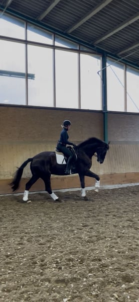 For sale is this six-year-old gelding by Finnigan out of a Damon Hill mare, directly from the breeder. From this direct dam line, several Grand Prix horses have already been produced. The dam, Donna Castania, is also the grandmother of the Bundeschampion For Real. Like all our sale horses, this charming gelding was born with us and was lightly backed at the age of four due to his size, then carefully developed. Finnigan is characterized by his excellent rideability, with a pleasant forward movement and easy contact. He is a fundamentally honest and sensitive horse, seeking a thoughtful rider who enjoys dressage work. Please feel free to contact us by phone at 0170 7741957 for further questions.