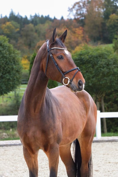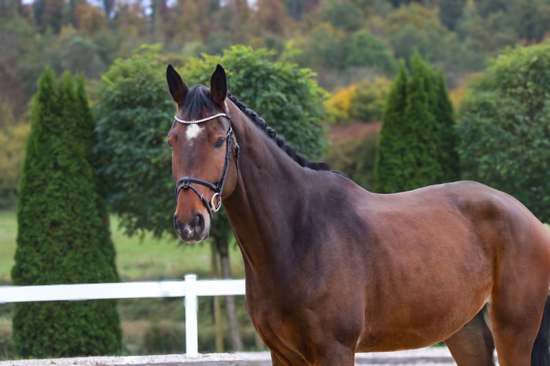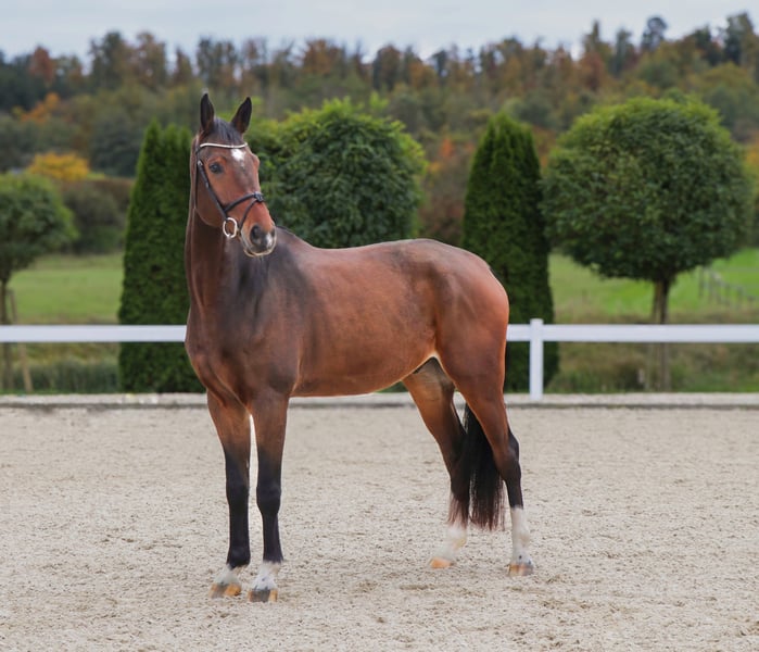 Der 7-jährige My Way ist sehr ruhiges und unbeeindrucktes Pferd. Er ist im besten Alter, hat eine super vielseitige Grundausbildung genossen und ist dadurch absolut kopfklar. Er ist zurückhaltend und gut erzogen im Umgang und deswegen von jedermann zu Händeln. Der Wallach kennt Führmaschine und Sandpaddock und zeigt sich hierbei sehr umgänglich mit Artgenossen und immer offenen dem Menschen gegenüber. Beim Reiten überzeugt er mit seiner gelassenen und vor allem sehr ruhigen Art. Er geht einfach in Anlehnung, hat einen super bequemen Galopp und ist immer bereit etwas neues zu Lernen. Er hat nicht so viel Blut, das ermöglicht es ihm, auch mit schwächeren Reiter und wackligeren Hilfen super umzugehen. Er kann auch mit einem Ausbinder geritten werden. May Way kennt die Arbeit an der Longe und ist auch dabei absolut unkompliziert - wir können ihn uns auch als Volti-Pferd gut vorstellen! Der Wallach hat Turniererfahrung im Springen, wir können ihn uns aber auch super in der Dressur, oder in beiden Sparten vorstellen. Er guckt nichts an und bestreitet sicherlich auch mal eine Vielseitigkeit. Springvideos sind am Ende des YouTube Videos zu sehen! Ein weiterer schätzenswerter Bonus ist seine absolute Zuverlässigkeit im Gelände. Sowohl alleine als auch in der Gruppe geht er brav vom Hof und zeigt sich im Gelände stets unerschrocken und zuverlässig. Der Wallach ist absolut straßensicher und mit ihm steht einem gelassenen und ruhigen Ausritt nichts im Weg. (Siehe Video) UNBEDINGT GANZES VIDEO ANSCHAUEN, GELÄNDE IST AUCH ZU SEHEN. Parcoursvideo gerne jederzeit auf Anfrage! • Stockmaß-Angaben sind geschätzt und nicht exakt nachgemessen • Alle Beschreibungen sind subjektive Einschätzungen des Verkäufers und keine zugesicherten Eigenschaften Aktuelle Röntgenbilder ohne Befund, sowie ein einwandfreier klinischer TÜV liegen vor. Bei Interesse gerne telefonisch melden unter 015140555583. Sie können sich auch am Wochenende oder an Feiertagen bei uns melden.
