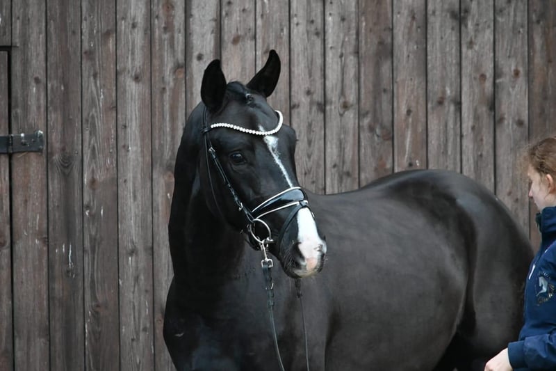 Frascari, Fürst Wilhelm x Sandro Hit, 8 anni, purosangue tedesco, stallone da 164 cm, importato in Svizzera a gennaio 2025 da Germania. È stato stallone approvato (castrato a dicembre 2024). Posizionato in dressage L, compatto, molto socievole, affettuoso, apprende facilmente, in buona salute. Presenta ferrature anteriori, posteriori nudi, facile nel maneggio. Non adatto ai principianti a causa della sua età, ha un buon carattere e ottimo temperamento. Attualmente sotto la guida di un professionista (registrato in Belgio per addestramento avanzato e ulteriori progressi). Può essere visitato e provato in qualsiasi momento.