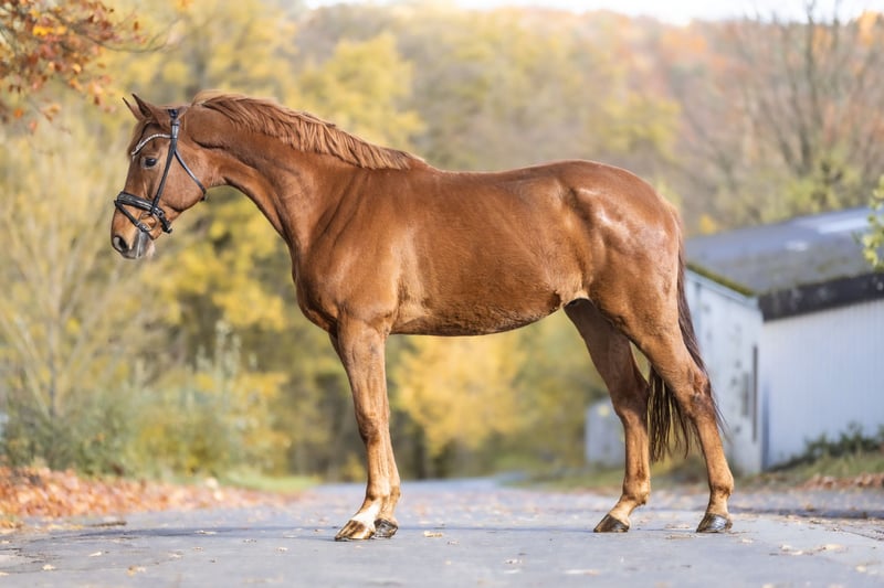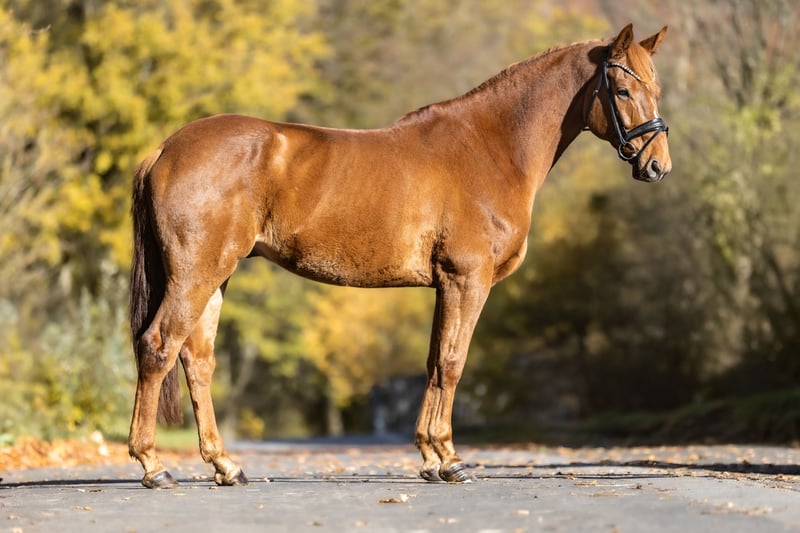 This stunning 8-year-old chestnut Westphalian gelding (approximately 16.1 hh) is not only a real eye-catcher but also a true heart horse. He impresses with his excellent uphill canter and a wonderfully elastic trot, making him a versatile all-rounder in both dressage and jumping. Having already competed successfully in competitions, he consistently shows motivation and joy in work. In handling, he is an absolute sweetheart. Affectionate, people-oriented, and simply lovable—a real "teddy" who loves to be in the spotlight and be involved in everything. He gets along well with all horses, is low in the herd hierarchy, and thus ensures harmony within any group. He is farrier- and loading-trainable, and shows himself to be uncomplicated and well-behaved in everyday life. A horse that brings joy every day with his friendly nature, charisma, and excellent riding qualities. Suitable for ambitious riders as well as for those looking for a loyal partner to share every adventure with. He is familiar with dogs, tractors, and also loves children. Location: 53578 Windhagen. If you are interested or have any questions, we look forward to hearing from you. Additional pictures and videos can be sent via WhatsApp upon request! A meet-and-greet is possible almost at any time. For the introduction or trial ride of the gelding, we charge a flat fee of €30. Of course, there is also the option to have your dream horse transported directly to your home.