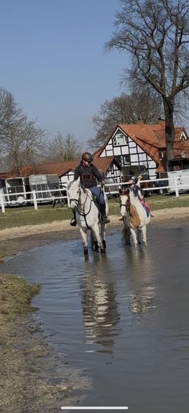 Wir verkaufen hier unseren 9 Jährigen Wallach Cosmo, da wir beide final einfach nicht richtig zusammenfinden. Cosmo ist ein sehr gutes Springpferd und da würde ich ihn auch in Zukunft sehen. Er zieht jeden Sprung an und macht hier einen sehr guten Job. Ich selber bin nicht springerfahren und reite eher Dressur. Mit einer Freundin ist er letztes Jahr A und L Springen gestartet. Auch mit Geländehindernissen und macht dies unglaublich gut. A** wurde er platziert. Er ist schon ein bisschen büffelig und kann sich auch mal stark machen, aber ansonsten ein lieber Kerl. Wir waren auch ausreiten und hatten ihn schon mit im Urlaub, auch da zeigt er sich unkompliziert. Kennt Offenstall und Box. Ist in unserer Herde auch total entspannt. Wir wünschen uns ein gutes Zuhause wo er im Springen gefördert wird. Er ist ca. 173 cm Vorm Anreiten 3 Jährig wurde bei ihm ein unkomplizierter Chip entfernt, und er wurde 4 Jährig wegen Kehlkopflähmung operiert, seitdem fit und gesund.