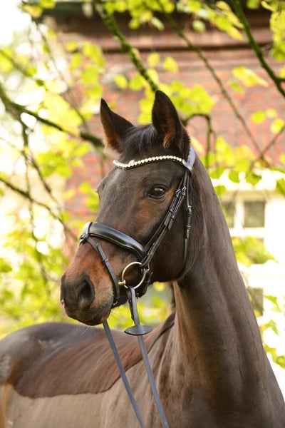 For sale is an impressive 8-year-old mare. This dark bay beauty captivates not only with her elegant appearance but also with her talent and willingness to work with her rider. She has already achieved multiple placings in L-level dressage competitions. **Features:** - **Breed:** German Riding Horse (Deutsches Reitpferd) - **Gender:** Mare - **Year of Birth:** 2016 - **Color:** Dark Bay - **Height:** 16.1 hh - **Training Focus:** Dressage This mare is ideal for someone who has the desire and time to grow together with a wonderful horse. She consistently demonstrates motivation and eagerness to learn, making her an excellent partner for talented dressage riders. Her harmonious conformation and affection for people make daily training a pleasure. She can be ridden alone or in a group, suitable for hacking out. If you are looking for a horse that seeks a strong bond with its handler and brings joy to everyday handling, this mare could be the perfect choice for you. Please do not hesitate to contact us for more information or to arrange a meet-and-greet. We look forward to introducing you to this talented mare in person. A trial ride fee of €50 applies, which will be deducted from the purchase price.