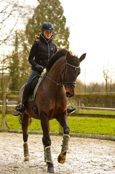 À vendre : une magnifique jument de 8 ans. Cette beauté baie impressionne non seulement par son allure élégante, mais aussi par son talent et sa volonté de travailler avec son cavalier. Elle a déjà obtenu plusieurs places en dressage L. **Caractéristiques :** - **Race :** Cheval de sport allemand - **Sexe :** Jument - **Année de naissance :** 2016 - **Couleur :** Baie - **Taille :** 1,69 m - **Spécialisation en dressage** Cette jument est idéale pour des cavaliers qui ont envie et le temps de grandir avec un cheval merveilleux. Elle se montre toujours motivée et désireuse d'apprendre, ce qui en fait une partenaire parfaite pour un cavalier de dressage talentueux. Sa silhouette harmonieuse et son attachement à l’humain rendent le travail quotidien agréable et fluide. Elle peut également partir en balade seule ou en groupe. Si vous recherchez un cheval qui cherche une relation de confiance et qui vous procure du plaisir au quotidien, cette jument pourrait être le choix idéal pour vous. Pour plus d’informations ou pour organiser une rencontre, n’hésitez pas à nous contacter. Nous serions ravis de vous présenter cette jument talentueuse en personne. Un coût de 50 € sera appliqué pour la séance d’essai, qui sera déduit lors de l’achat.