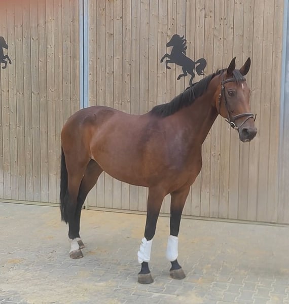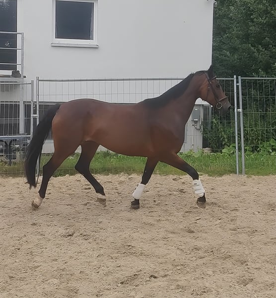 Top-bred 9-year-old mare, approximately 175 cm tall, with a pedigree that speaks for itself (Rock Forever x Fürst Romancier). An extremely dynamic, powerful movement combined with excellent conformation makes this horse an absolute eye-catcher. Registered in the Westphalian mare book. You can find the complete pedigree in the attached ownership certificate. Transport can be organized. A veterinary pre-purchase examination can also be conducted by your own veterinarian, including X-rays and blood tests. We look forward to your call at 015172059610. Written inquiries will not be answered.