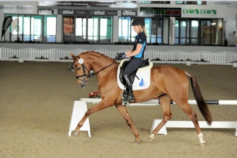 Die Stute ist 2014 geboren und erhielt auf der Elitetestutenschau 2017 in Westfalen einen 1d Preis. Sie legte ihre Stutenleistungsprüfung mit einer dressurbetonten Endnote von 8.1 in Münster/Handorf 2017 ab. Sie war Siegreich in der Dressurpferdeprüfung der Klasse L . Und konnte zusätzlich einige hohe A und L Dressurpferde-Platzierungen erzielen. Ihre Mutter wurde hochpreisig beim CHIO in Aachen verauktioniert und lief bis PSG /Inter I unter Frau Max-Theurer. Escolar und Breitling W sind in dieser Stute bestens kombiniert. Deshalb wurde Sie ab der Coronazeit auch gern in der Zucht eingesetzt. Aktuell befindet Sie sich wieder im leichten Training...