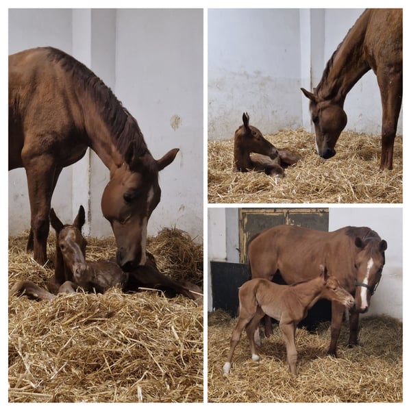 I am offering my mare by Destano x Fanastico x Watzmann (born in 2015, approximately 17.2 hh). In 2023, she foaled a colt and was immediately pregnant again through natural cover after not conceiving following a stillbirth with her previous owner. She has been ridden generally, but due to a motor impairment, her movement is unbalanced. X-rays from the clinic in Telgte, which examined her jaw and cervical vertebrae, showed no abnormalities. The veterinarian suspects that her issues resulted from external influences (e.g., a pasture accident) and sees no obstacle to her continued use as a broodmare. Currently, she is ridden with a combined bit and sidepull, with varying success. One to two rides per week are generally no problem, but I do not want to sell her as a purely leisure horse. She is not a "problem horse," but rather has a physical limitation that can be well compensated through targeted groundwork. She enjoys this very much, and further training in this area could benefit her. Overall, she is a very people-oriented animal. I am only offering her because I will keep her offspring and unfortunately lack the time to devote to her. She could also serve as a companion for another horse, as she gets along well with others and shows no social difficulties. Videos of her lunging and riding can be sent via WhatsApp or Telegram. Priority over price! This is not an emergency sale. I wish for her to find a loving home—preferably with breeders or experienced horse owners. For a 5-star home, the price is not the main concern.