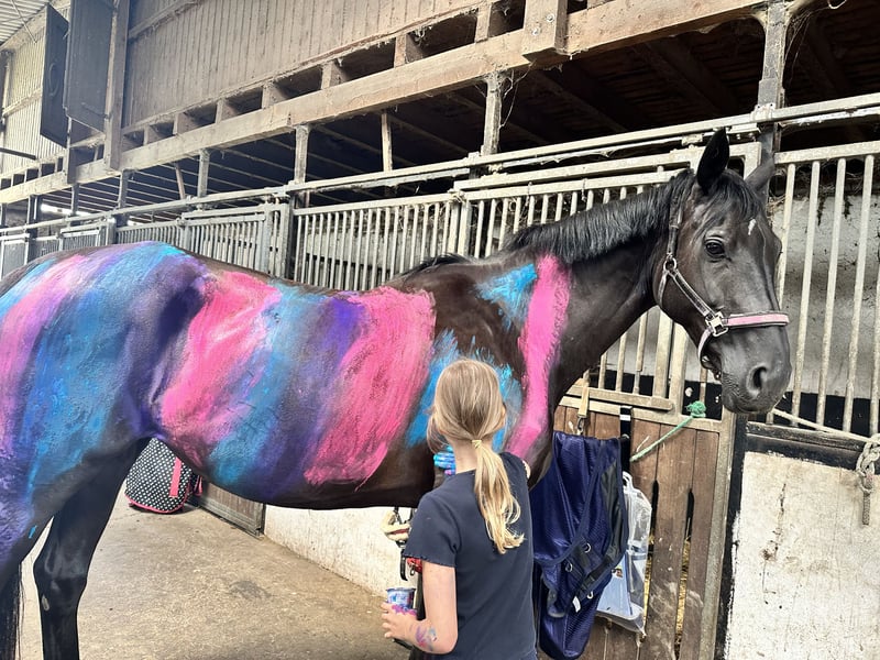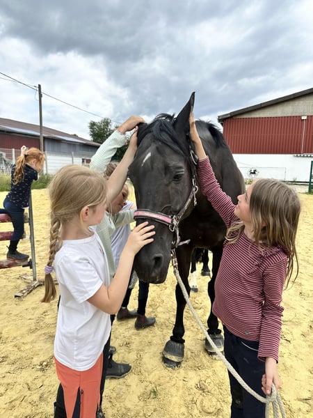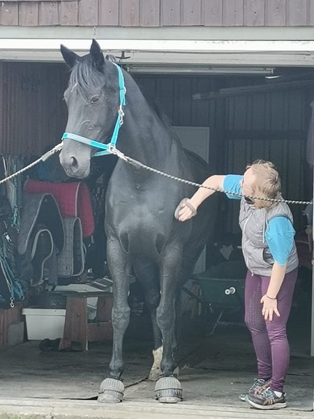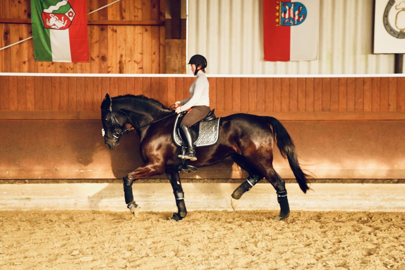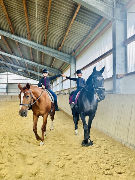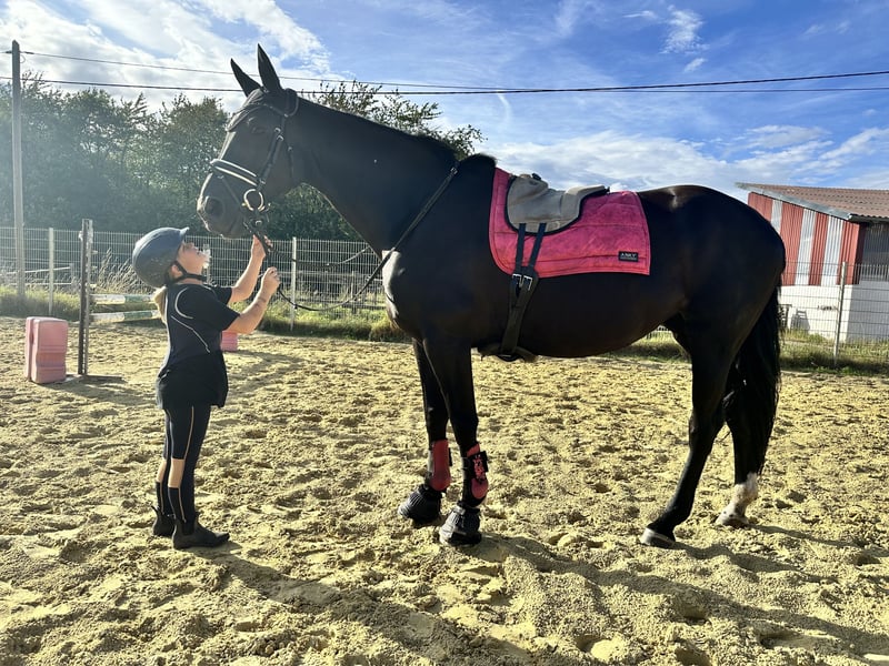 For sale is my 12-year-old, 1.70 m tall black mare, who has been in my possession since she was a foal. Her mother is also still at our stable. Training & Achievements: - Competed in half a tournament season at the age of 6, placed almost everywhere - Won A-level dressage, placed in dressage horse A, placed in suitability test - Completed various cross-country training courses - Mainly been used for leisure riding since the Corona pandemic Character & Suitability: - Absolutely reliable in the field and when handling children - My 7-year-old daughter can fetch her from the pasture alone, groom, saddle, and ride her independently at walk and trot - Sweet and calm when riding for leisure purposes - Can become hectic under demanding work in higher gaits; a smoothly seated rider is required here - Used to open stable housing and should remain so Health: - Robust and healthy, except for a hoof joint inflammation in 2024 (stepped on a stone during pasture turnout) - No vet check or X-rays available; can be commissioned by the buyer if needed Miscellaneous: - Sale due to professional and financial reasons - Home before price – I will only part with her as a family member - Viewing possible at any time, trial ride for €50, which will be credited upon purchase A beautiful mare with a clear history, excellent foundations, and a big heart. Ideal as a reliable leisure and family horse with an additional sporting background; full siblings have been successful in sports up to M level. Her complete equipment can be purchased as well.
