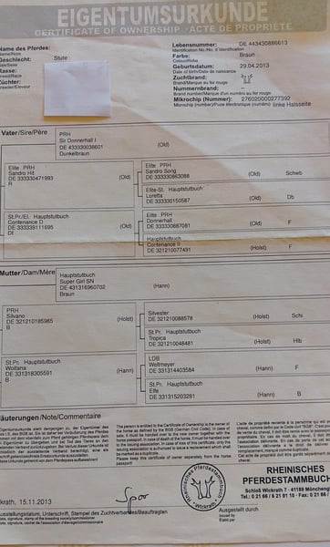 12j Sir Donnerhall Stute...... direkter Stamm der Dressurlegende FIDERMARK !!!!! , ca 171 Stkm, dbr., trgd für 4/26 von Fair Deal, sehr fruchtbare Stute !!! Gekörte und GP Pferde aus dem Stamm !!! Zzt mit bewegungsstarkem Hengstfohlen von Despacito bei Fuß. Preis für beide zusammen verhandelbar. Bitte telefonisch erfragen. Vollschwester letztes Jahr über Westfalen überdurchschnittlich verkauft! Nur wegen Aufgabe der Zucht zu verkaufen..... Telefonischer Kontakt 01739558692