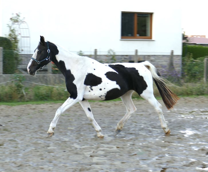 A special offer! Iluminada A - 13-year-old Westphalian mare by Ismo x Shakespeare x Potsdam NRW, height 167 cm. Ilu is homozygous tobiano (so every foal will be spotted), not bred in 2025. She has already produced sport-successful offspring.
