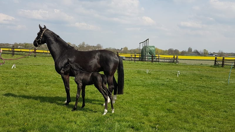 De Niro breeding mare for sale. The 12-year-old premium mare, De Niro – Weltmeyer – Absinth, black, is a true breeding gem. She is the full sister to the multiple Grand Prix (European Championships/World Championships) successful Delgado. She is in foal to the stallion Robert De Niro Junior. Other siblings include the S* winning Hotmeyer (Hotline-Weltmeyer), the licensed stallion Schumacher (Stedinger-Weltmeyer), and the S* winning Jazzmeyer (Jazzmate-Weltmeyer). From the sister Sommermärchen (Sir Donnerhall I-Weltmeyer) comes the licensed stallion Future Me BC (First Deal-Weltmeyer). In the videos, you can see her filly by Emiliano from 2024 and her colt by Emiliano from 2025. A successful lineage par excellence. For inquiries, please contact the breeder Wilhelm Lambardt directly. Phone +49 170 4403960, location Hamm.