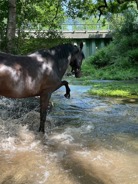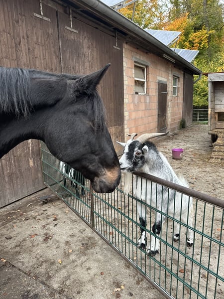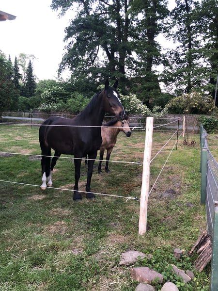 Schweren Herzens haben wir uns aus Zeitmangel durch Studien-/Ausbildungsbeginn dazu entschieden, unsere 17 jährige Westfalenstute Ciara zu verkaufen. „Cici“ ist etwa 1,60m groß, deckt gut ab und ist im täglichem Umgang stets brav. Unterm Reiter haben wir dressurlich in den letzten 4 Jahren nicht so gut zusammengefunden, weshalb wir lieber die Zeit im Gelände genossen haben. Im Gelände ist sie mit einem zweiten Pferd sehr brav und immer kontrollierbar. Aufgrund von Durchtrittigkeit, sollte sie nicht springen, wird dadurch im Alltag jedoch absolut nicht eingeschränkt. Aktuell läuft Cici barhuf und kommt trotz regelmäßigen Ausritten gut damit zurecht und steht beim Schmied brav. Cici kennt Boxenhaltung mit täglich Paddock-/ Weidegang und Offenstallhaltung und kommt mit beidem gut zurecht. Durch die aktuelle Haltung im Offenstall, kennt sie Bauernhoftiere wie Hühner, Schweine und Ziegen, Trecker und den täglichen Trubel und meistert diesen problemlos. Aus Zeitmangel ist sie aktuell leider nicht so gut im Training, ein leichtes Probereiten (Halle/Platz und auch auf Wunsch Gelände) ist trotzdem jederzeit nach Absprache möglich. Bei Interesse melden Sie sich gerne über WhatsApp unter 0176/52276095