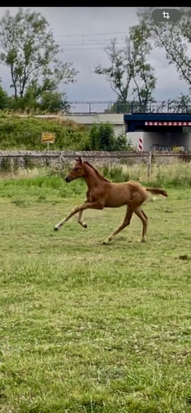 The tall young lady impresses with her charm, beauty, charisma, and loving character. Additionally, she is very athletic (despite the very dry pasture) with an excellent walk, an expansive trot, and an obvious uphill canter. Her father, Dynamic Dream, left the licensing as a champion stallion, record price holder, and is endowed with outstanding hereditary power. Many of his offspring have been auctioned for very high prices. The foal's grandmother is the full sister of the internationally successful Alive and Kicking under Charlotte Dujardin. At just nine years old, she won in the Grand Prix, Grand Prix Special, and in the freestyle. She was named as a reserve horse for the 2024 Olympics. The maternal grandfather, Vincent Maranello (Danish champion stallion by Blue Horse Zack / Future Cup / Romanov), is the sire of the well-known Zupermann in Westphalia. He is also internationally successful in the Grand Prix. https://youtube.com/shorts/sQ9gW7MkFGg?si=qgZwoAjaw2xwPFnp **Features:** - Breed: Westphalian - Gender: Mare - Year of Birth: 2025 - Color: Chestnut - Suitability: Dressage For further information or to schedule a viewing, please feel free to contact me. We look forward to your inquiry!