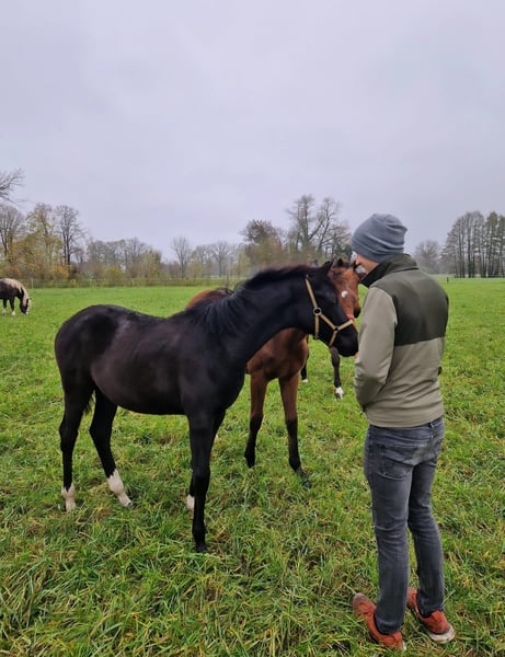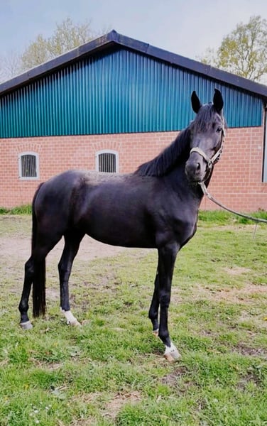 Wir verkaufen hier eine sehr liebe und gut geprägte sehr schöne Rappstute mit einem schönen Stern vor der Stirn. Woulez Vous geht brav am strick mit,ist total verschmust,und ist ein totaler Menschenfähn. Sie hat sehr lockere und schöne Bewegungen,die uns so manches mal den Ahtem verschlagen lässt,da es so schön aussieht wenn sie daher trabt.wer sich ein tolles Pferd heranwachsen lassen möchte,und für sich prägen möchte,Der hat hier einen richtigen Goldschatz gefunden.kommen sie gerne bei uns vorbei,ich stelle ihnen gerne Voulez Vous vor,sie freut sich immer wenn jemand kommt. Mit freundlichen Grüßen Rita Bruns