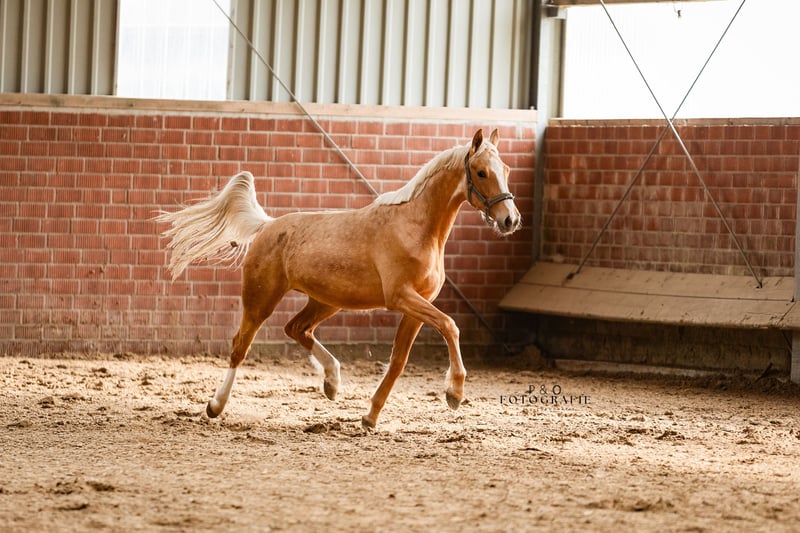 Palomino merrie met bijzondere kwaliteit – een echt juweel Deze 2-jarige merrie is echt bijzonder. Met haar opvallende palomino kleur, veel expressie, beweging en uitstraling valt ze meteen op. De afstamming Qandide x Fürst Piccolo x Medoc combineert modern dressuurbloed met type en rijbaarheid. Maar niet alleen zij zelf overtuigt: haar halfbroers (v. Qaside) werden op de Westfaalse veulenkampioenshow verkocht voor hoge prijzen (respectievelijk €21.500 en €18.000). Deze merrie beschikt dus over aantoonbare prestatiegenen – en staat haar verwanten in niets af. ✨ veelbelovende bewegingen ✨ prachtige, vrouwelijke uitstraling ✨ helder van geest en prettig in de omgang Voor ons een echt juweel voor sport of fokkerij.