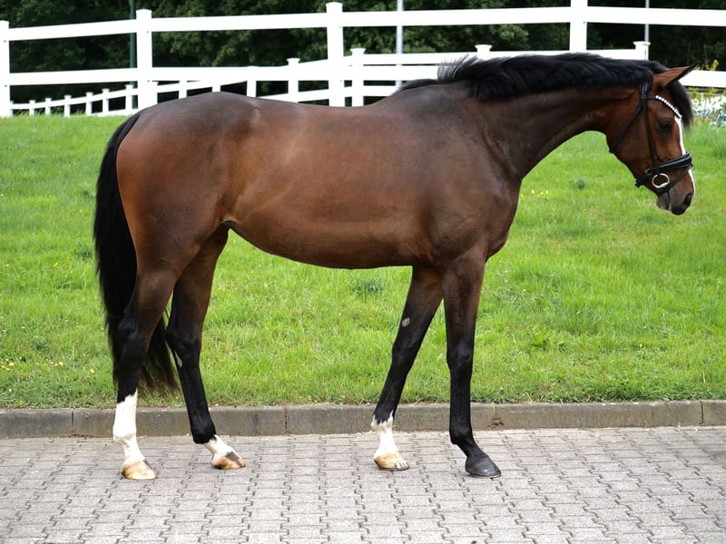 For sale is this beautiful brown mare, sired by Zoom x Londontime. She currently stands at approximately 1.62m tall. We have had her with us since she was a foal. Additionally, we have lunged and backed her ourselves. Since we have never let her go out of our hands, she has never had any bad experiences. In handling, she is very uncomplicated and shows a strong affinity for people. She is currently being backed and has so far shown herself to be very rideable and well-behaved. A great training horse for the future! Good X-rays including neck and back (09/2024) are already available. Location: 47199 Duisburg