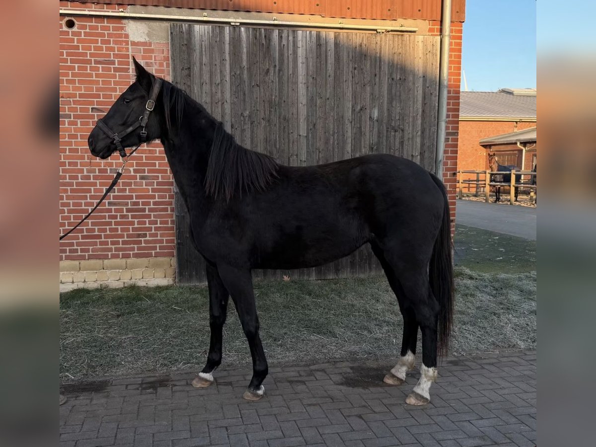 Zum Verkauf steht eine typvolle 3-jährige Westfalen-Stute. Name: Skye Geburtsdatum: 05.04.2023 Geschlecht: Stute Rasse: Westfälisches Reitpferd Farbe: Rappe Abstammung: Skyline to B (SWB) – Surprice Die Stute ist roh und nicht angeritten. Sie ist im Umgang brav und altersgerecht entwickelt. Aufgrund von Röntgenbefunden wurde der Preis entsprechend reduziert. Daher eignet sie sich besonders für ambitionierte Freizeitreiter, die ein Pferd für langfristigen Aufbau und Freude am Reiten suchen. Gleichzeitig ist sie durch ihre interessante Abstammung auch für die Zucht eine spannende Option. Bei ernsthaftem Interesse freuen wir uns über Ihre Nachricht oder einen Anruf. Besichtigung nach Terminvereinbarung möglich.