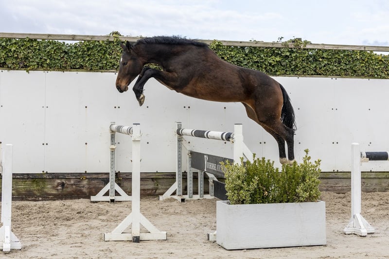 Donkerbruine, langgelijnde merrie met een modern model en veel uitstraling. Opvallend is haar zeer goede voorbeentechniek en het overzicht dat ze toont op de sprong. Ze springt met een correcte manier en laat zien dat ze het werk makkelijk oppakt. Een paard met kwaliteit en instelling voor de toekomst. Vader Coros – 1.55m Zoon van Cornet Obolensky (1.60m), bewezen sporthengst met vermogen en techniek. Moeder Coletta R (v. Colestus 1.60m) Moederlijn / stam Grootmoeder Pamela (v. Pilot) Uit de moederlijn: – Quincy R – 1.35m Verder in de stam: – Pilot – goedgekeurde hengst – Colestus – 1.60m – Cornet Obolensky – 1.60m – Clinton – 1.60m Sterke Duitse prestatiestam met bewezen sportgenen.