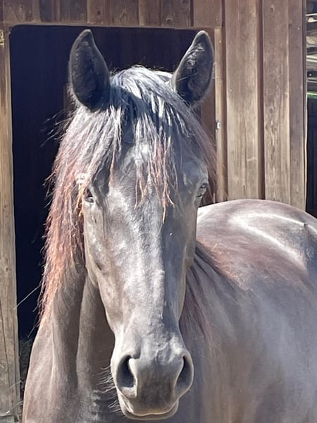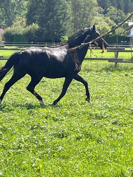 Bildschöne Rappstute, roh (halfterführig), sehr lieb und menschenbezogen mit sehr guten Bewegungen und sehr interessanter Abstammung, sehr guter TÜV vorhanden