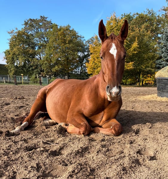 For sale is a promising three-year-old mare by Depeche Mode out of a Rockwell dam. This young mare impresses especially with her charming personality and her willingness to learn. She captivates not only visually but also through her temperament. She is always friendly, resilient, and curious. She has three very good basic gaits. Currently standing at approximately 1.60 meters at the withers, she is still fully in development. Her correct conformation and her energetic, ground-covering hind leg provide a solid foundation for her further sporting career. She has everything needed to become an excellent sport partner: talent, a good pedigree, and a good interior. In daily handling, she is very sweet, uncomplicated, clear-minded, and absolutely child-friendly. She is familiar with grooming, picking up all four hooves, and lunging work. "Schnatti" is currently being gently backed. She learns very quickly, is diligent, and relaxed. She is herd-friendly and currently lives with mares and geldings. Naturally, she has been regularly vaccinated, dewormed, and stands quietly for the farrier (barefoot). Schnatti’s sire, Depeche Mode, is a movement-oriented horse known for his expressive, ground-covering gait. He impresses notably as an action-type stallion at stallion parades. Furthermore, the Damon Hill son consistently demonstrates willingness and strong character. Depeche Mode achieved an outstanding result at his 70-day test in Neustadt (Dosse) in 2010, with a dressage-oriented final score of 8.4 – the second-best result of the test. His rider rated his rideability with a 9.25. Depeche Mode has numerous offspring with success in riding horse and dressage competitions. Price: Negotiable Location: Schönwalde-Glien Contact: Antje Nitzschmann, 0170/48 12 889