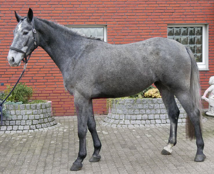 Talented and beautiful mare by Cornet Obolensky out of a Cartier v.d. Heffinck mother. She shows great reflexes and ability when free jumping. A veterinary check with X-rays is available. We currently have 6 more offspring by Cornet Obolensky (all from 2022). You are welcome to come and see the horses daily from 8 AM to 6 PM. Phone and WhatsApp: 0176 62495567.