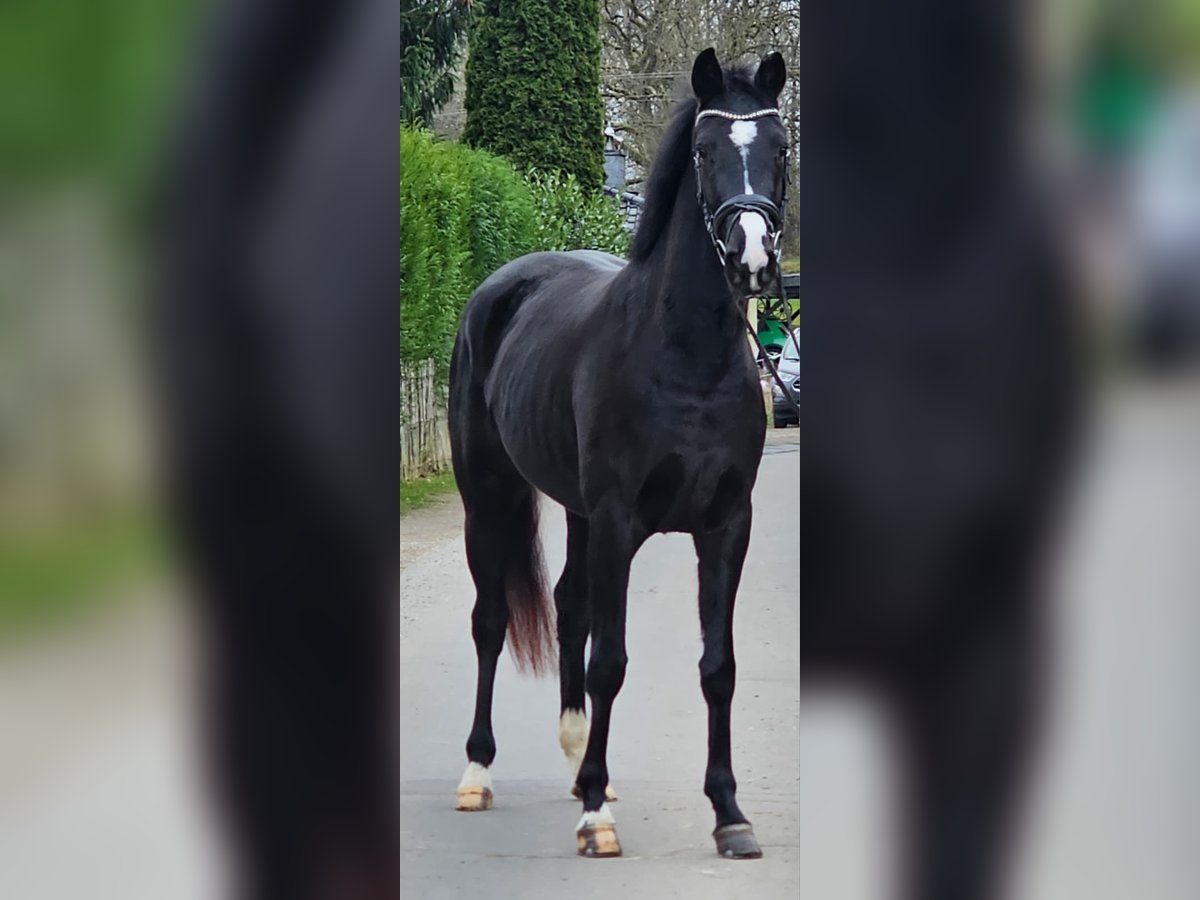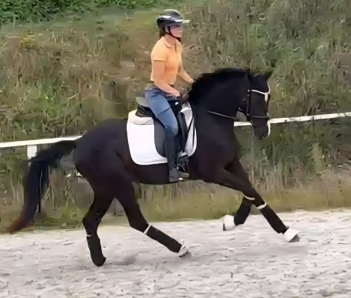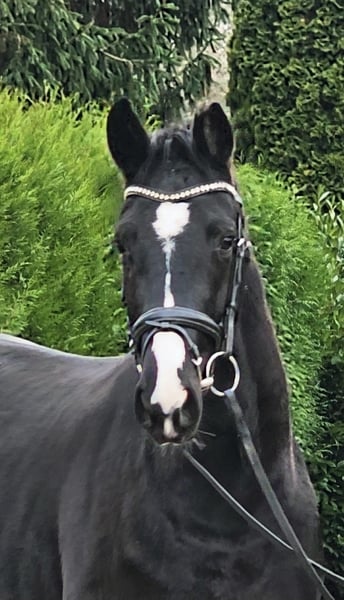 Die hübsche Bea stammt aus unserer eigenen Zucht! Bis zum Tag des Anreitens stand Bea ganzjährig drausen und konnte ihre Jugend in vollen Zügen genießen. Sie ist eine bildschöne Rappstute und bringt alles mit, was man für das große Viereck benötigt. Schon bei ihrem ersten öffentlichen Auftritt konnte sie direkt überzeugen und wurde 4. in einer Reitpferdeprüfung. Sowohl Verladen als auch der tägliche Umgang sowie putzen oder abspritzen meistert Bea problemlos. Ausgiebige Schmuseeinheiten geniest Bea auch sehr. Sie stammt aus einem hocherfolgreichen Mutterstamm. Die Mutter sowie weitere Geschwister stehen am Hof und können besichtigt werden. Bea verfügt über drei sehr gute GGA, angeritten, Röntgenbilder liegen vor, inkl Rücken und Hals, laut Tierarzt o.b.B. Sie hat einen kleinsten Chip, der laut Tierarzt keine Probleme machen sollte aber leicht zu entfernen wäre.