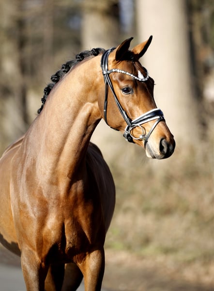 Eine wunderschön aufgemachte, ganz elegante Dressurpuppe aus dem Bilderbuch. Leichtfüssiger, graziler Bewegungsablauf und ein äusserst reizvolles Seitenbild unter dem Reiter( Reiterin auf Video ist 1,79m!) komplettieren den positiven Auftritt dieser Titelträgerin, deren prominente Vollschwester bereits eine Vorahnung auf die mögliche Zukunft gestattet. Eine typstarke, gut angerittene Traumstute, die gerecht reifen durfte und auf entsprechende Aufgaben wartet. Aus gesunder und solider Aufzucht. Gute Röntgenbilder, gerne zum Versand.