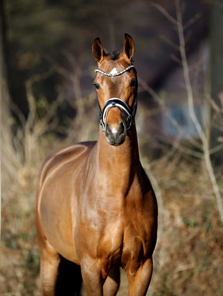 Una splendida e molto elegante puledra da dressage da manuale. Un movimento leggero, grazioso e un profilo laterale estremamente affascinante sotto il cavaliere (la cavallerizza nel video è alta 1,79 m!), completano la presenza positiva di questa campionessa, la cui sorella di sangue prominente lascia già intuire un futuro promettente. Una cavalla da sogno, di tipico aspetto, ben avviata e correttamente preparata, che ha raggiunto la maturità e attende incarichi adeguati. Da allevamento sano e solido. Buoni raggi X, possibilità di spedizione.