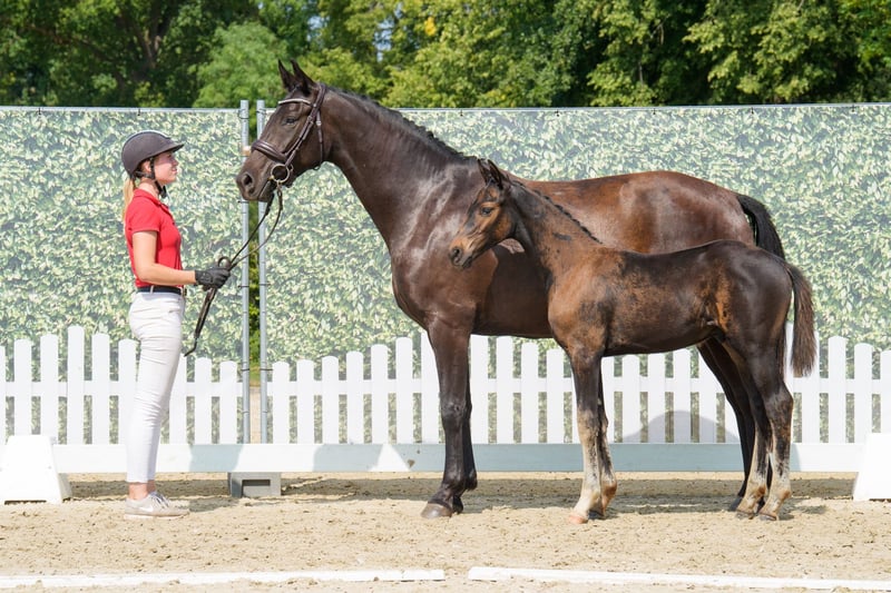 Beautiful 4-year-old mare by Sandro Hit x De Niro x Warkant from the Zauberflöte lineage. Sophie Zauber had her first foal this year by the stallion One to Remember. She was immediately confirmed in foal. As my 88-year-old mother is withdrawing from breeding, she is now offered for sale. Sophie’s half-sister Felicitas (by Floresco) already produced the approved stallion Sir Floresco. She also gave birth to the champion foal Invincible at the Foal Championships in Lienen, as well as the stallion by Dynamic Dream, who is currently being considered for the Westphalian licensing. Sophie’s half-brother Django Unchained is preparing for his Grand Prix debut. Sophie Zauber was recently radiographically approved for sport. An excellent opportunity for anyone looking for a mare from a successful dressage or breeding line. Her foal will be weaned this week, so she is ready for a new adventure!