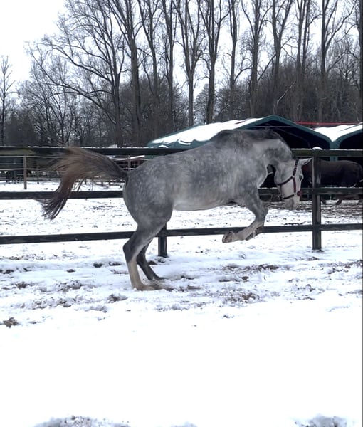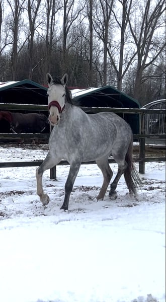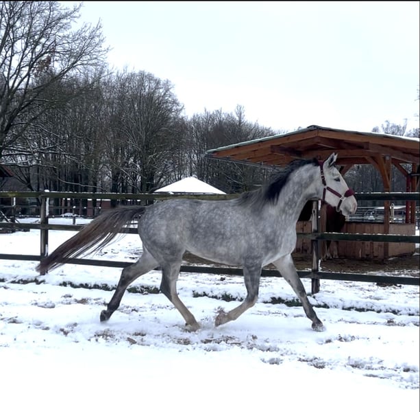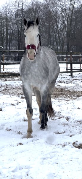 Im Kundenauftrag verkaufen wir diese wunderschöne 4-jährige Westfälische Schimmelstute Donna mit sehr guter Abstammung, klarem Kopf und besten Voraussetzungen für eine partnerschaftliche, vielseitige Zukunft. Eine interessante, solide Abstammung mit guter Vererbung für Rittigkeit, Vermögen und Charakter. Donna wird aktuell bei uns im Offenstall gehalten und kommt dort sehr gut im Herdenverband zurecht. Regelmäßige Gesundheitsvorsorge war und ist selbstverständlich. • gesund • barhuf • regelmäßig beim Hufschmied • entwurmt • geimpft Aufzucht & bisheriger Werdegang Donna durfte bis November 2025 in einer Fohlenaufzucht unbeschwert und artgerecht aufwachsen. Beste Bedingungen waren für diese Stute von Anfang an gegeben. Sie steht nun bei uns und wird nun langsam und schonend an alle Tagtäglichen Dinge gewöhnt. Sie ist eine feine, sanfte und neugierige Stute mit klarem Kopf, sehr gutem Exterieur und einer angenehmen Arbeitseinstellung. Sie zeigt sich aufmerksam und lernwillig. Aktuell arbeiten wir ruhig und altersgerecht an: • Biomotorik (Pferdekörperausbildung) • Hängertraining • Longenarbeit • Handarbeit & Freiarbeit • Spaziergängen • Gewöhnung an das Reitpad • Gewöhnung an alltägliche Umweltreize Sie befindet sich im Aufbau der Grundlagen und gewinnt dabei kontinuierlich an Sicherheit und Vertrauen. Wir sehen Donna: • bei einem ambitionierten Freizeitreiter • oder bei jemandem, der Freude an vielseitiger Arbeit, Ausritten und einer partnerschaftlichen Entwicklung hat ❗ Sie wird ausdrücklich nicht als reines Turnier- oder Sportpferd abgegeben. Platz vor Preis. Donna kann auf Wunsch auch nach dem Verkauf weiterhin bei uns stehen bleiben. Unabhängig vom Kauf bieten wir eine Pferdepension direkt an unserem Ausbildungsstall an und begleiten die weitere Ausbildung bei Bedarf gerne gemeinsam mit dem zukünftigen Besitzer. Ein Vorgespräch sowie ein ruhiges, persönliches Kennenlernen sind uns sehr wichtig und ausdrücklich erwünscht. Ein Probereiten ist aktuell noch nicht möglich, da sich Donna bewusst in der altersgerechten Basisarbeit befindet. Bei ernsthaftem Interesse bitten wir um eine kurze persönliche Vorstellung (Reiterfahrung, Vorstellungen, Rahmenbedingungen).