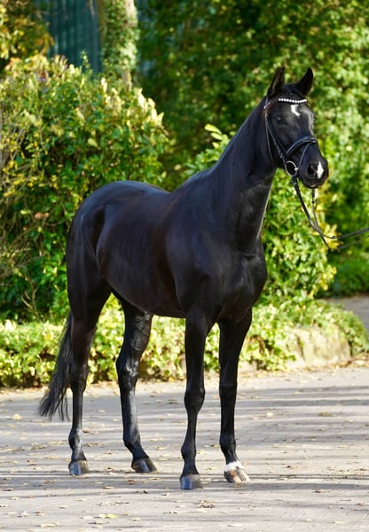 Bardzo elegancka klacz Westfalska – idealna dla ambitnych miłośników ujeżdżenia! Ta piękna, czarna gniada klacz pochodzi z naszej własnej hodowli i dorastała w rodzinnej atmosferze. Przyciąga swoim atrakcyjnym wyglądem w głębokiej czerni oraz bardzo otwartym i pełnym ciepła charakterem. Została już delikatnie zaczipowana przez nas latem i jest gotowa do dalszej nauki zarówno w ujeżdżeniu, jak i skokach. Jej jakość ruchu, zaangażowanie w pracę oraz przyjemny, zrównoważony temperament czynią ją idealnym partnerem dla ambitnego jeźdźca. W przypadku zainteresowania chętnie nawiążemy kontakt!