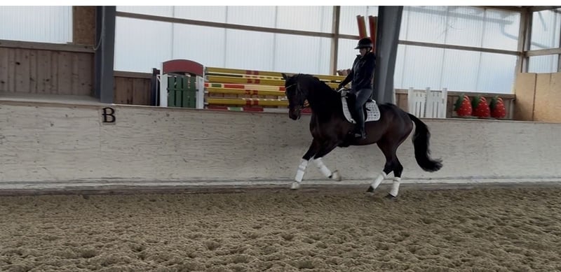 Perfekt, das bauen wir elegant ein – ohne plump zu wirken, aber mit klarer Wertigkeit: ⸻ Diese ausdrucksstarke, dunkelbraune 5-jährige Stute überzeugt auf den ersten Blick durch ihre harmonische Erscheinung, ihr elegantes Format und ihre ansprechende Gesamtqualität. Sie bringt genau das Gesamtpaket mit, das sich viele Reiter wünschen: eine gelungene Kombination aus Rittigkeit, Charakter und Perspektive. Auch züchterisch lässt diese Stute keine Wünsche offen: Sie stammt aus einer hochkarätigen, bewährten Abstammung, in der sich sowohl väterlicher- als auch mütterlicherseits leistungsstarke und qualitätsvolle Pferde wiederfinden. Diese genetische Basis spiegelt sich deutlich in ihrer Bewegungsqualität, ihrer Einstellung und ihrem modernen Typ wider. Bereits jetzt zeigt sie sich für ihr Alter außergewöhnlich ausbalanciert und angenehm zu reiten. Sie vermittelt ihrem Reiter jederzeit ein sicheres, unkompliziertes Gefühl, ist sitzbequem und lässt sich konstant und feinfühlig reiten. Dabei bleibt sie stets brav, klar im Kopf und absolut verlässlich. Ihre Bewegungen sind taktsicher, elastisch und von natürlicher Qualität geprägt – eine solide Grundlage für die weitere Förderung. Gleichzeitig überzeugt sie durch ihr hervorragendes Interieur: freundlich, verschmust und stets dem Menschen zugewandt. Durch ihre angenehme Größe ist sie besonders interessant für kleinere Reiterinnen oder Jugendliche, bietet aber gleichzeitig genügend Qualität für eine weiterführende dressurmäßige Ausbildung. Damit spricht sie sowohl ambitionierte Freizeitreiter als auch Reiter mit sportlicher Perspektive an. Auch im täglichen Umgang zeigt sie sich absolut unkompliziert, lieb und ausgeglichen – ein Pferd, das jeden Tag Freude macht und schnell zum verlässlichen Partner wird. Ein sehr ansprechendes, modernes Pferd mit viel Ausstrahlung und einem Charakter, den man sich kaum besser wünschen kann. ⸻ Standort: Rosenheim Weitere Verkaufspferde finden Sie bei uns – vielleicht ist auch Ihr passender Partner dabei. Aufgrund der aktuellen Wetterverhältnisse werden weitere Fotos in den nächsten Tagen ergänzt.
