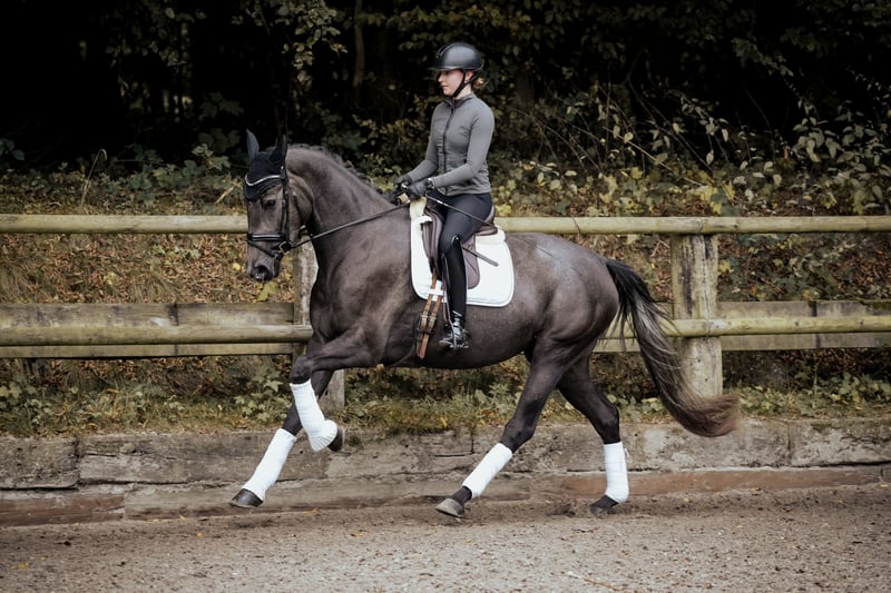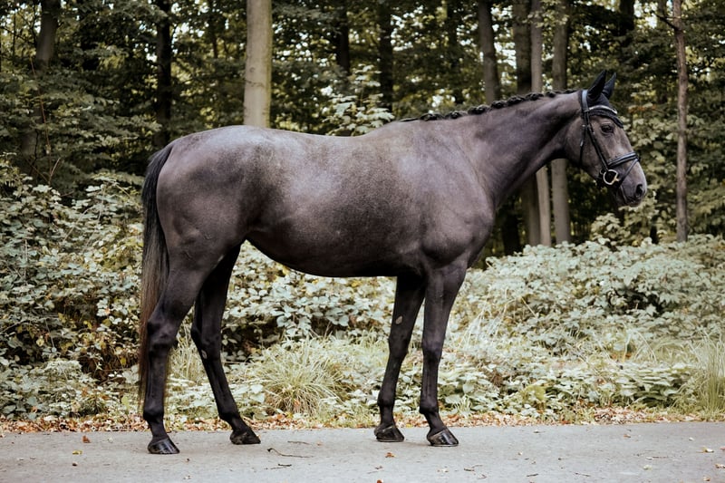 Deze prachtige, zeer donkere schimmelruin combineert alles wat je je voor het grote vierkant wenst: drie bovengemiddelde basisgangen, een heldere geest en een hart van goud. Haar stap is altijd ritmisch en duidelijk overtreedend. De draf heeft een mooie knieactie en is krachtig vanuit de achterhand, eveneens altijd in takt. Vooral haar galop verdient vermelding: altijd bergop en met veel ruimtegriff aangelegd. Dit paard is echt bijzonder. Voor haar drie jaar is ze een absolute voorbeeldleerling. Sinds mei dit jaar is ze in training en is heel voorzichtig, met veel liefde, opgeleid. Ik durf te zeggen dat ze moeiteloos elk longeercertificaat zou behalen. Ze wil haar ruiter altijd plezieren, reageert op de fijnste signalen, of dat nu stem of lichaamstaal is. Ze beschikt over uitstekende rij-eigenschappen en bevindt zich nog aan het begin van de opleiding op de schaal. Ze is absoluut onbevreesd en zorgt goed voor haar ruiter. Geen dag gaat voorbij zonder dat Lorena met een glimlach afstapt – gewoon een paard dat pure vrolijkheid brengt. Uit de stam van de moeder, een van de oudste westfaalse merriestammen (uit een gerenommeerd fokkerhuis), komen al vele sportpaarden die tot S-dressuur succesvol waren. De halfbroer (van Rock Forever) is 5 jaar oud en heeft plaatsingen in L-dressuur en heeft Dressuurpaard A gewonnen (video’s op aanvraag). De halfzus van Escolar (nu 6 jaar) was als veulen gekwalificeerd voor Lienen en toont nu onder het zadel eveneens hoge kwaliteit en altijd braaf – ze heeft al A-dressuren gewonnen met 8,7 en is op weg naar de L-dressuur. De halfzus van Zoom behaalde direct op haar tweede concours plaatsingen in de 4-jarige dressuurpaarden. Alle paarden waren tot nu toe vanaf het begin zeer braaf en wilden graag gefallen. De volle zus van de moeder is eveneens succesvol tot M** niveau. Burlington FRH was zelf enorm sportief en nauwelijks in de fokkerij actief, maar overtuigde door uitzonderlijke rij-eigenschappen, zenuwsterkte en bereidheid tot presteren. Ik verkoop deze merrie alleen aan de allerbeste en meest stimulerende handen. Ze is een echt hartpaard dat alleen maar plezier kan brengen. Röntgenfoto’s van januari zijn zonder bevindingen.