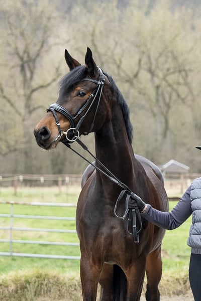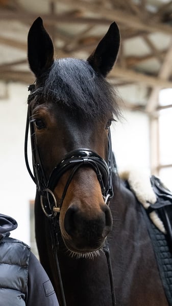 Bella ist eine 4 jährige Stute von Fürst Belissaro x Quasar de Charry (Mutter ist die Vollschwester zu Quizmaster von Frederic Wandres). Sie ist 1,71m groß und besticht nicht nur mit ihrer edlen Optik, sondern auch mit ihrem herzlichen Wesen. Bella ist immer brav und unerschrocken. Sie wurde 3 jährig angeritten und hat danach den Sommer auf der Wiese genossen. Über den Winter wurde sie 3-4mal wöchentlich leicht gearbeitet und diesen Sommer hat sie die meiste Zeit aufgrund Zeitmangels meinerseits auf der Weide verbracht. Doch auch nach einigen Wochen ausschließlich auf der Wiese kann man ohne Probleme wieder losreiten und Bella gibt sich als hätte sie nie eine Pause gemacht. In der Arbeit ist sie stets konzentriert und motiviert, dementsprechend lernt sie schnell. Sie ist aktuell auf sicherem Dressurpferde A Niveau und entwickelt sich gut weiter Richtung L Niveau. Sie ist Schmiede- und Verladefromm, herdenverträglich und hat einen sehr guten Tüv aus 2023 inkl. Hals und Rücken. Sie wird ausschließlich in liebevolle und wertschätzende Hände abgegeben.
