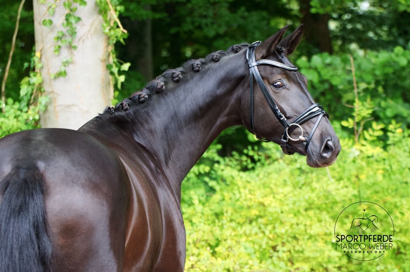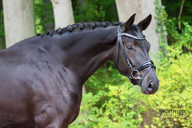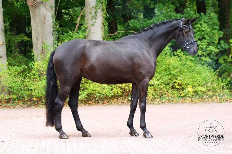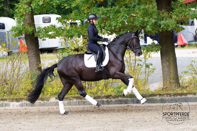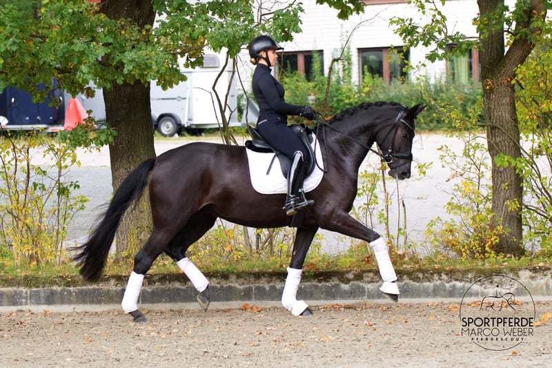 Westfale • Stute • *2021 • ca. 1,72 m ⚜️ La Vie – Rubin Royal ⚜️ 💥 Traumhafte Rappstute mit Perspektive 💥 Ein richtig tolles Nachwuchspferd für ambitionierte Dressurreiter/innen – und aufgrund ihrer Abstammung auch später für die Zucht sehr interessant! Die Stute befindet sich aktuell auf Dressurpferde A-Niveau und ist seit Anfang des Jahres unter dem Sattel. Sie zeigt sich in jeder Lebenslage souverän, ist absolut brav im Umgang und überzeugt durch ihre positive Einstellung zur Arbeit. Sie ist artgerecht und liebevoll aufgewachsen, wurde sorgsam sowie professionell angeritten und regelmäßig gefördert. Auch das Verladen in den Hänger bereitet keinerlei Probleme. Momentan steht sie noch etwas in der Entwicklung und darf sich körperlich wie reiterlich weiter festigen – ein tolles Pferd mit Zukunft! Die Stute befindet sich noch im Besitz der Züchter. Ein aktueller, guter Röntgen-TÜV liegt vor. 📍 Standort: bei Osnabrück 📞 Nähere Informationen gern unter: +49 173 3013499