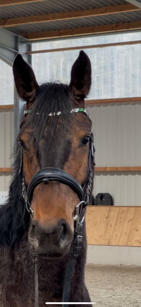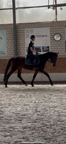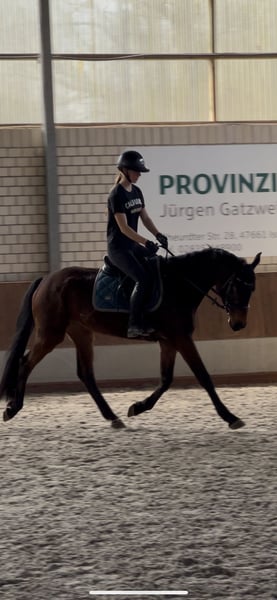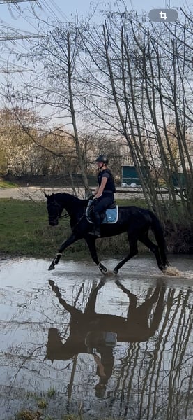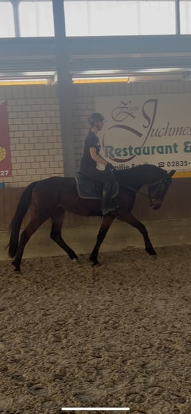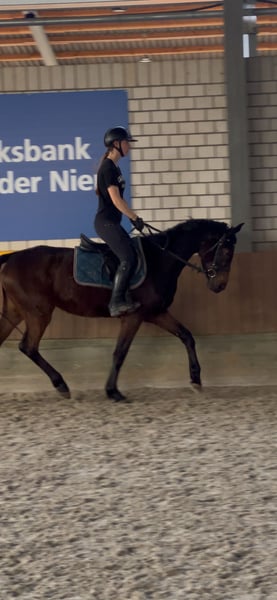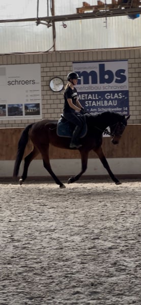 ⭐️ Cash von Papi ⭐️ Stute | 2021 | ca. 1,60 m | Abstammung: Cornet de Semilly × Valentino „Mausi“, wie sie bei uns im Stall liebevoll genannt wird, ist eine junge, vielversprechende Stute mit toller Abstammung. Sie ist aktuell etwa einen Monat unter dem Sattel und zeigt sich dabei sehr rittig, lernwillig und brav im täglichen Umgang. Mausi ist seit etwa zwei Monaten bei uns im Stall. Sie kam ursprünglich über das Veterinäramt aus schlechter Haltung, weshalb sie bei ihrer Ankunft leider sehr dünn war und zunächst in Ruhe aufgepäppelt werden musste. In dieser Zeit hat sie sich sehr gut entwickelt und körperlich wie mental toll aufgeholt. Sie ist angeritten, kennt die Longe und wird aktuell in Schritt, Trab und Galopp geritten. Außerdem macht sie bereits erste kleine Sprünge unter dem Reiter und zeigt dabei Mut, Vermögen und eine gute Einstellung zur Arbeit. Auch außerhalb des Reitplatzes konnte sie bereits Erfahrungen sammeln: - mehrfach im Gelände geritten - Geländeplatz kennengelernt (Baumstämme, Auf- und Absprünge, Wasser) - zeigt sich dabei neugierig und motiviert Der Anhänger ist für sie kein Problem – bisher ist sie allerdings nur zusammen mit anderen Pferden gefahren. Aufgrund ihrer Vorgeschichte und ihres jungen Alters hat sie noch nicht viele Erfahrungen sammeln können. In neuen oder ungewohnten Situationen kann sie daher manchmal noch etwas unsicher reagieren, lässt sich mit einem ruhigen und sicheren Reiter jedoch gut wieder entspannen. Daher ist Mausi kein Anfängerpferd. Sie sucht einen sicheren und einfühlsamen Reiter, der Freude daran hat, ein junges Pferd weiter auszubilden. Aufgrund ihrer Rittigkeit, ihres Mutes sowie ihres guten Gangwerks kann ich sie mir sehr gut als Nachwuchspferd für die Vielseitigkeit vorstellen. Weitere Informationen: - grundimmunisiert - fn eingetragen - AKU (Ankaufsuntersuchung) kann gerne auf Wunsch gemacht werden Dies ist kein Notverkauf – Mausi wird ausschließlich in verantwortungsvolle und liebevolle Hände abgegeben. Preis steigt bei weiterer Ausbildung bzw. Turniervorstellung. Bei ernsthaftem Interesse oder weiteren Fragen freue ich mich über eine Nachricht Standort: Kerken 47647