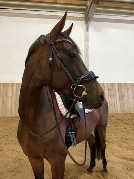 For sale is our 4-year-old, self-started mare Ria Lux. We are reluctantly offering her up because we currently have too many horses at the stable and are looking for a suitable home where she can be individually supported. Ria impresses with an outstanding character, excellent rideability, and a lot of trust in her rider. Despite her young age, she consistently demonstrates reliability, calmness, and a willingness to learn—whether in the riding arena, indoor hall, or in the field. She has three very good basic gaits, a pleasant contact, and is easy to sit. Her lightness and balanced temperament make her a pleasant partner in daily training. Ria possesses everything one would wish for in a modern sport horse and has the potential to develop further in show jumping or dressage with proper promotion. She is also well-suited for ambitious amateur riders due to her uncomplicated nature.