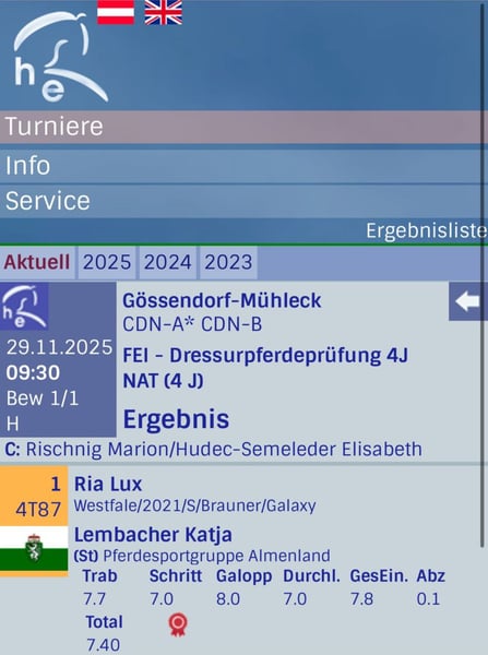 À vendre, notre jument de 4 ans, Ria Lux, qui a été montée seule dès son jeune âge. C'est avec le cœur lourd que nous la plaçons, car nous avons actuellement trop de chevaux dans notre écurie et recherchons pour elle un foyer où elle pourra être soutenue et développée de manière individualisée. Ria séduit par son caractère exceptionnel, sa grande aptitude à la selle et sa confiance envers le cavalier. Malgré son jeune âge, elle se montre toujours fiable, calme et désireuse d'apprendre – que ce soit sur le manège, en carrière ou en extérieur. Elle possède trois allures de base très bonnes, une attitude agréable en selle et se laisse monter avec douceur. Sa légèreté à la main et son tempérament équilibré en font une partenaire agréable pour l'entraînement quotidien. Ria possède toutes les qualités que l’on attend d’un cheval de sport moderne et a le potentiel pour évoluer en compétition avec un encadrement approprié. Elle convient également parfaitement à des cavaliers amateurs ambitieux grâce à son caractère facile.